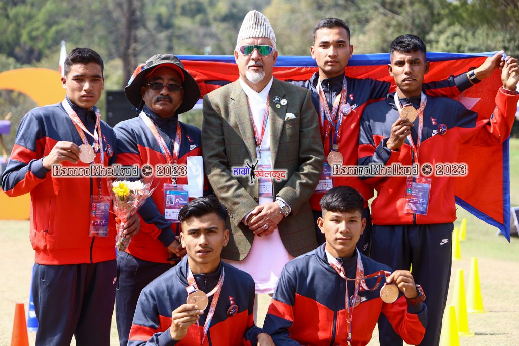 शेरबहादुर अधिकारी, सञ्जय दमाई र विकेश घिमिरेले १ घन्टा ३१ मिनेट ५० सेकेन्डमा दौड पूरा गर्दै तेस्रो स्थान प्राप्त गरेको हो । भारतले १ घन्टा २५ मिनेट ४० सेकेन्ड र इरानले १ घन्टा २६ मिनेट ५६ सेकेन्डमा दौड पूरा गरेका हुन् ।