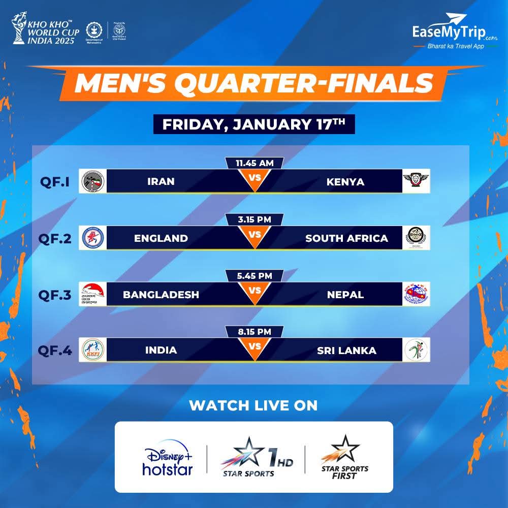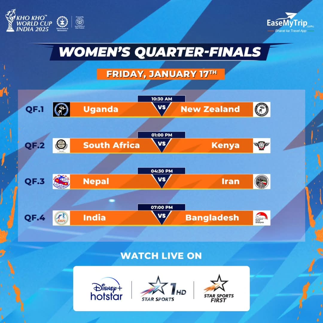 काठमाडौं (हाम्रो खेलकुद)- नेपालको महिला र पुरुष दुवै टोलीले भारतमा जारी खो खो विश्व कपमा शुक्रवार क्वाटरफाइनलमा खेल्दैछन् ।