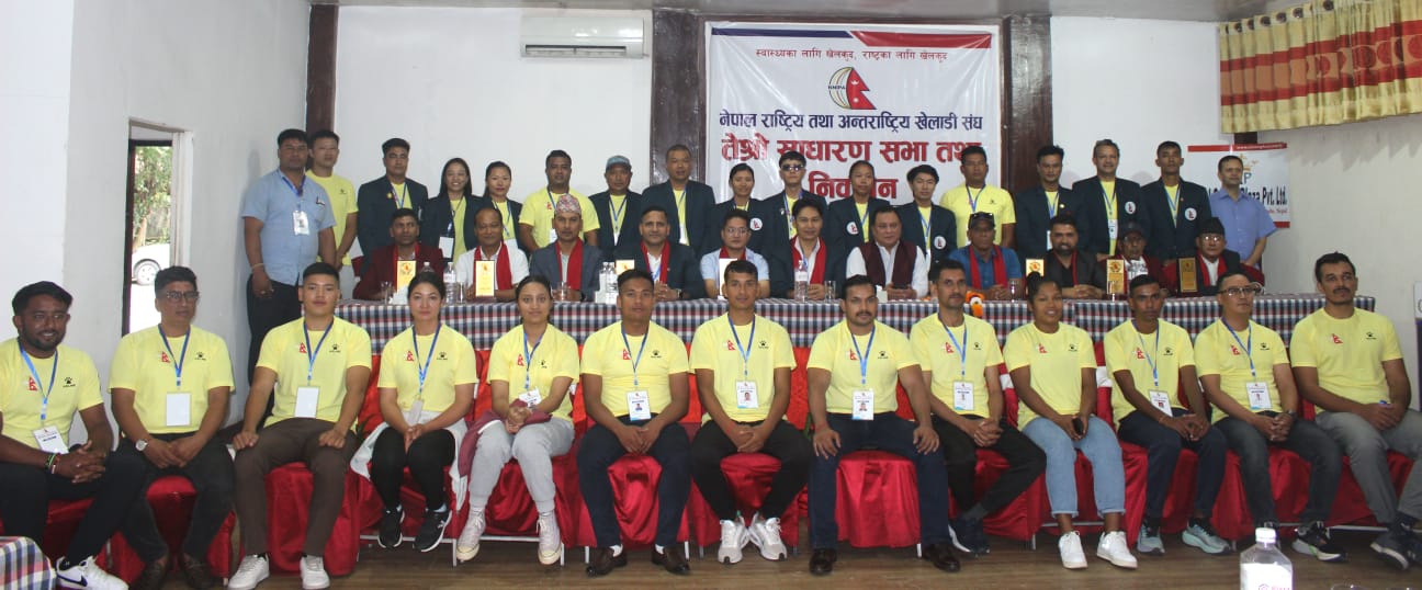 काठमाडौं (हाम्रो खेलकुद)- नेपाल राष्ट्रिय तथा अन्तर्राष्ट्रिय खेलाडी संघको तेस्रो साधारणसभा तथा निर्वाचनबाट दीपक श्रेष्ठको अध्यक्षतामा १५ सदस्यीय कार्यसमिति निर्विरोध चयन भएको छ।
