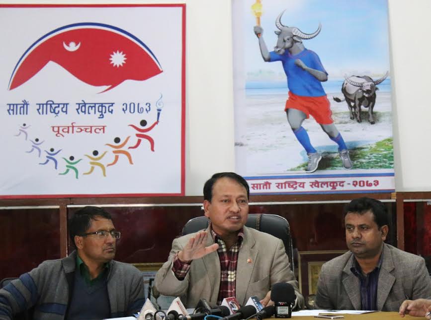 काठमाडौं (हाम्रो खेलकुद) – चौथो पटक घोषणा गरिएको सातौं राष्ट्रिय खेलकुद प्रतियोगिता यसपाली भने तोकिएकै मितिमा हुने सम्भावना देखिएको छ । पूर्वाञ्चलमा पछिल्लो पटकका लागि तय भएको पुस ८ देखि १५ गते सम्म हुने सातौं राष्ट्रिय खेलकुदको सबै तयारी भएको राष्ट्रिय खेलकुद परिषद् (राखेप) ले शुक्रबार पत्रकार सम्मेलनमार्फत जानकारी दिएको छ ।