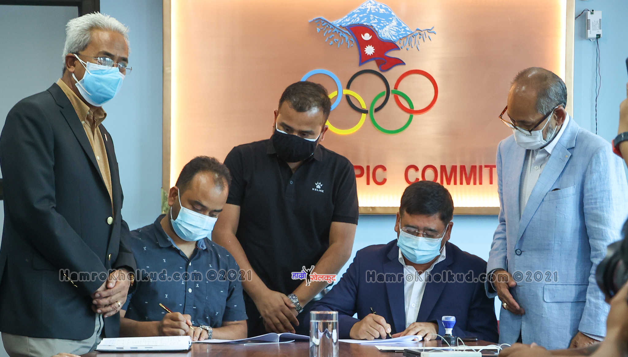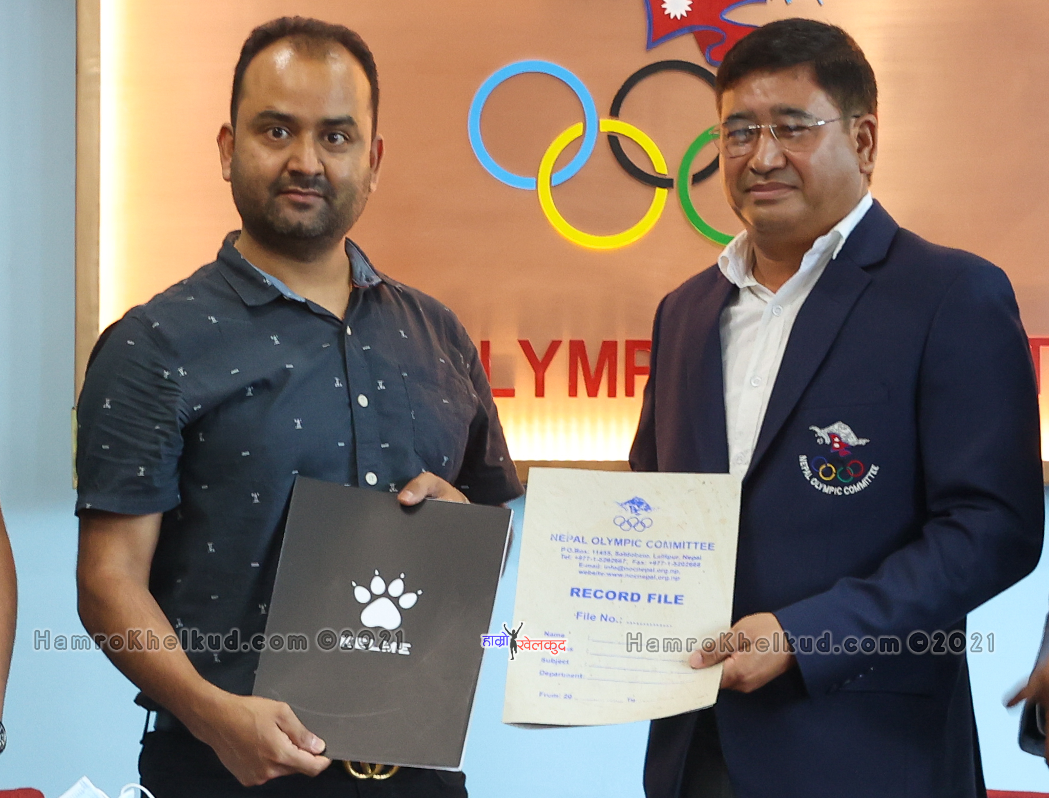एनओसीका अध्यक्ष जीवनराम श्रेष्ठ र कामारुका निर्देशक प्रदीप न्यौपानेले सम्झौता पत्रमा हस्ताक्षर गरेका थिए । ओलम्पिकमा भाग लिने खेलाडी र प्रशिक्षकलाई केल्मीले आफ्ना ब्रान्डका सामान उपलब्ध गराउने छ ।