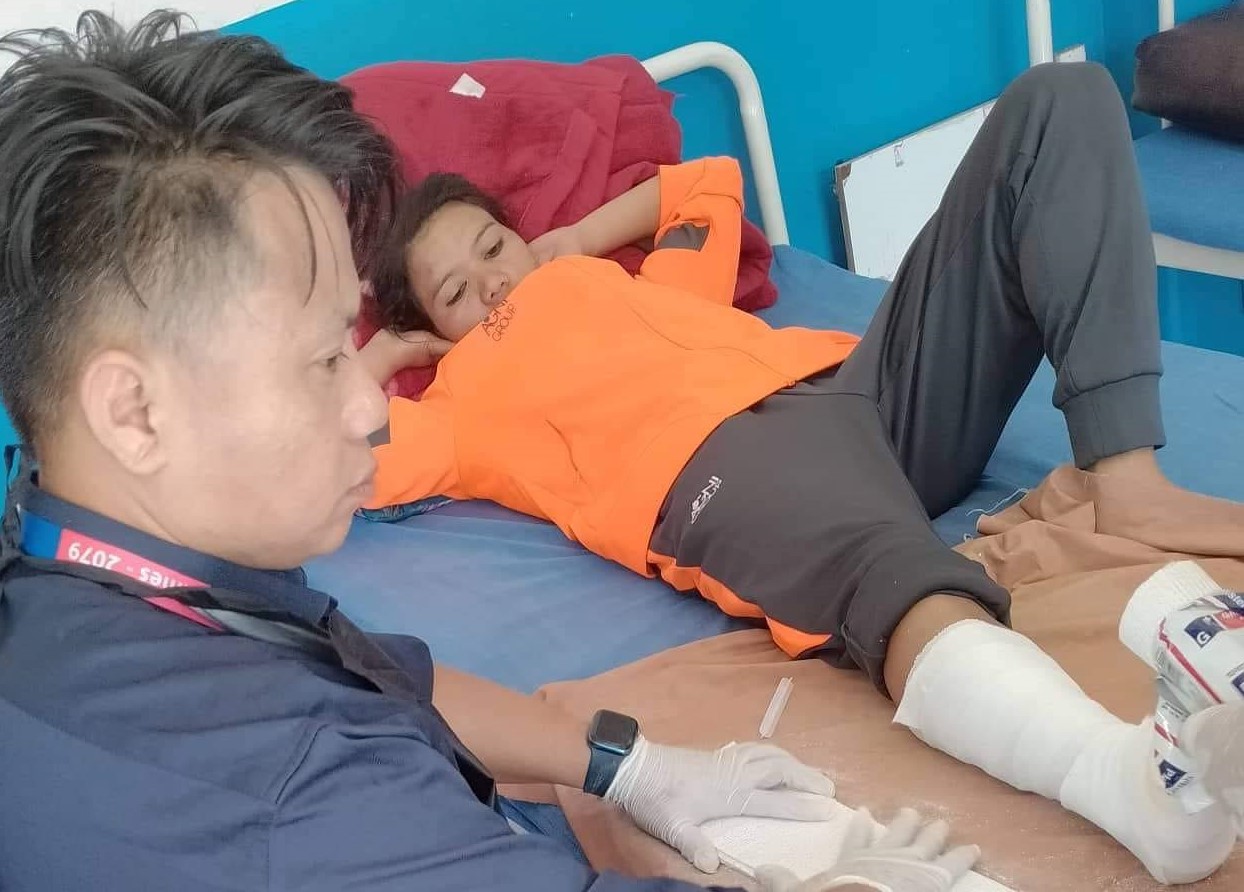 म्यराथनको करिब २० किलोमिटर दूरी पार गर्ने क्रममा उनको खुट्टा फ्याक्चर भएको हो । झन्डै २० कीलोमिटर पार गर्दै थिँए,खुट्टा दुख्यो,’ नवौं महिला १० किलोमिटरमा कास्य पदक जितेकी पुष्पाले, ‘सुरुमा दुखाई हुँदा महसुस गरिन । पछि दौडन नै नसक्ने भए । अनि छाडे।’ उनको पोखरास्थित अन्नपूर्ण हस्पिटलमा उपचार गरिएको छ । उनको गोलीगाँठो भन्दा तलको भागमा केही समस्या देखिएकाले पलास्टर गरिएको उपचारमा संलग्न चिकित्सकले बताएका छन् ।