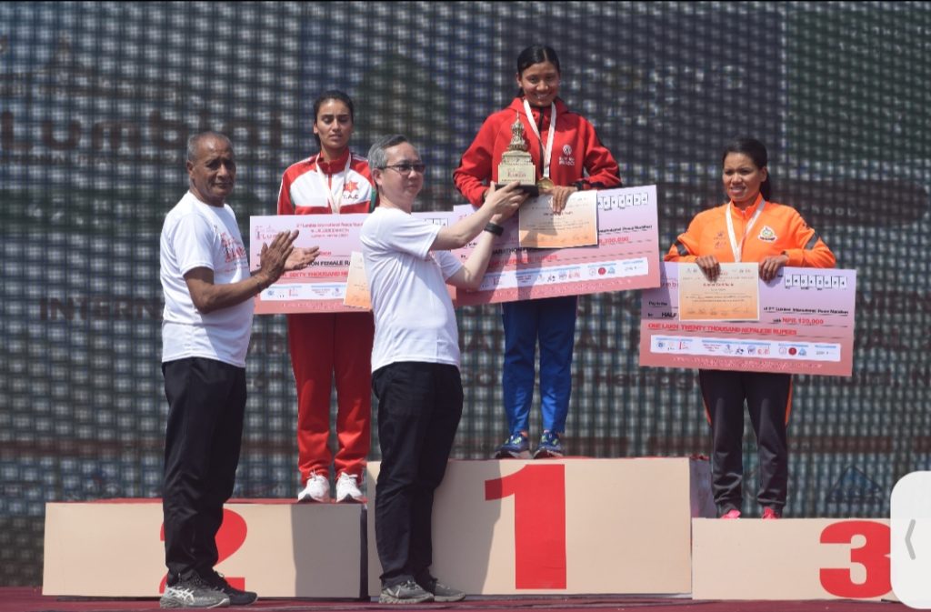 त्यस्तै लुम्बिनी अन्तर्राष्ट्रिय पिस म्याराथनको महिला हाफ म्याराथन सन्तोषी श्रेष्ठले जितेकी छिन्।