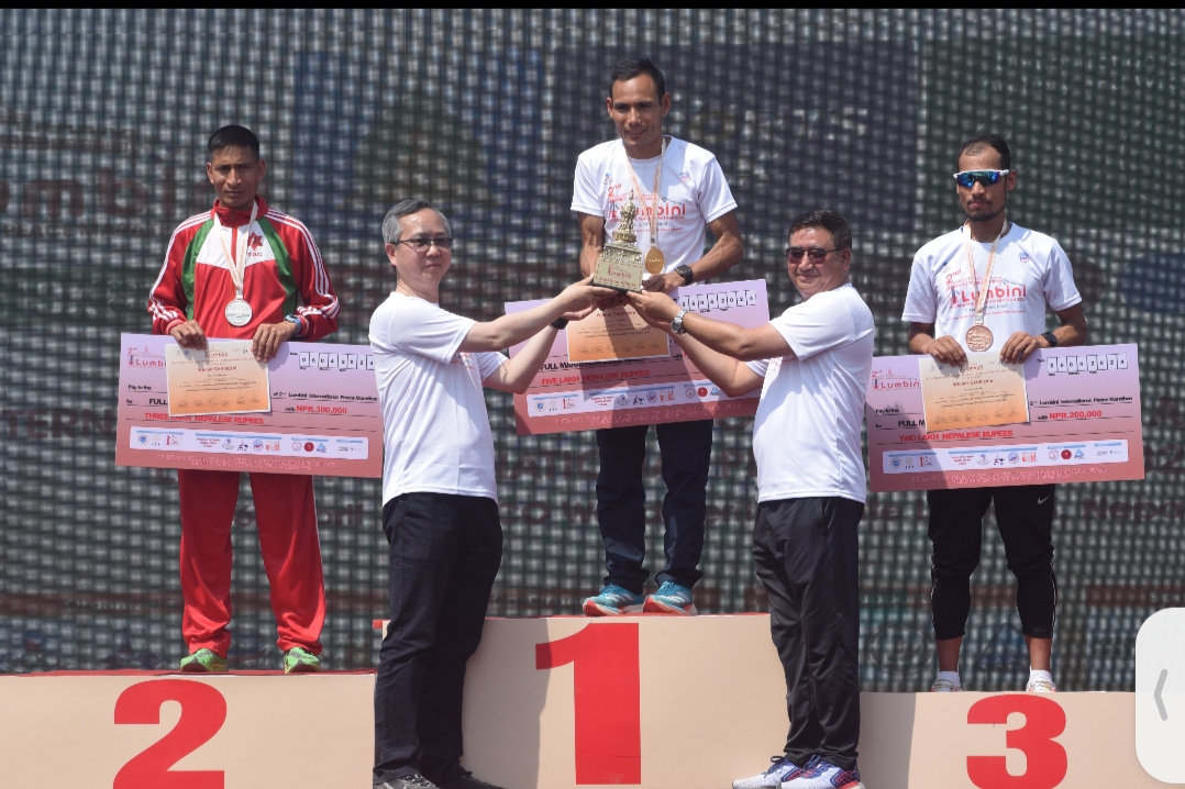 म्याराथन, हाफ म्याराथन तथा ५ किमि दौडको सुरु तथा अन्त्य लुम्बिनी स्कवायरमा भएको थियो । विकास र शान्तिको लागि अन्तर्राष्ट्रिय खेलकुद दिवसको दिन अप्रिल ६ को अवसरमा एनओसीको मुल आयोजना तथा नेपाल स्थित चिनिया दुतावास, लुम्बिनी बिकास कोष, नेपाल पर्यटन बोर्ड तथा लुम्बिनी प्रदेश खेलकुद परिषदको सहकार्यमा प्रतियोगिता भएको हो ।
