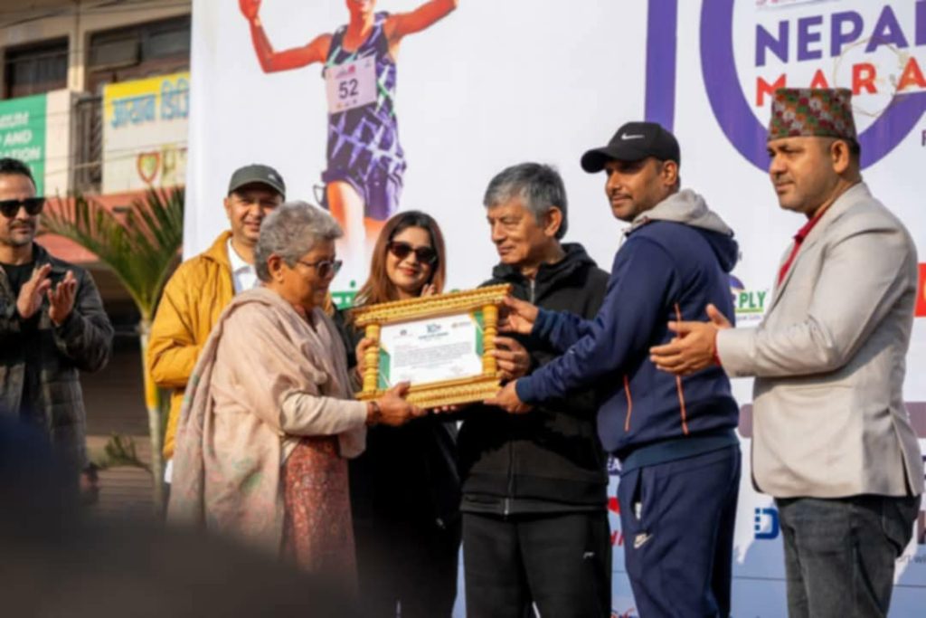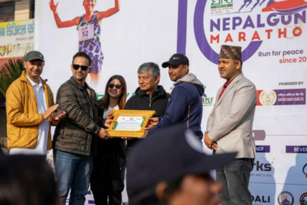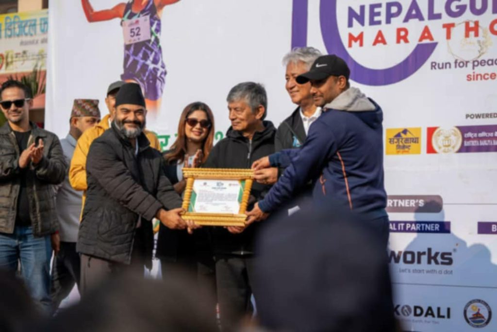 म्याराथन दश वर्षमा पुगेका अवसरमा उक्त सम्मान अर्पण गरिएको अध्यक्ष ठकुरीले जानकारी दिए । म्याराथनलाई निरन्तर मुख्य प्रायोजन गर्दै आएको केएल दुगड ग्रुपका सिईओ प्रदीप छाजेड, एञ्जल्स स्कुलका प्रिन्सिपल ७५ बर्षिया बीना मल्ल, ब्राइटल्याण्ड कलेजका प्रिन्सिपल विजय लामा, कान्तिपुर टिभीका सिईओ शिशिर पछाई, नेपालगन्ज उपमहानगरपालिका, कोहलपुर नगरपालिका, प्याब्सन बाँके, दैनिक नेपालन्जका प्रधान सम्पादक झलक गैरेलगायतलाई प्रदान गरिएको हो ।
