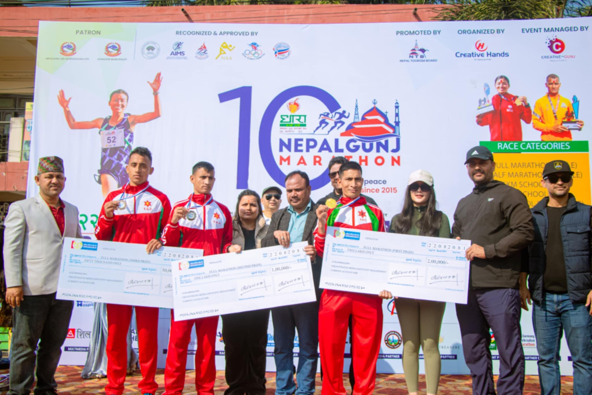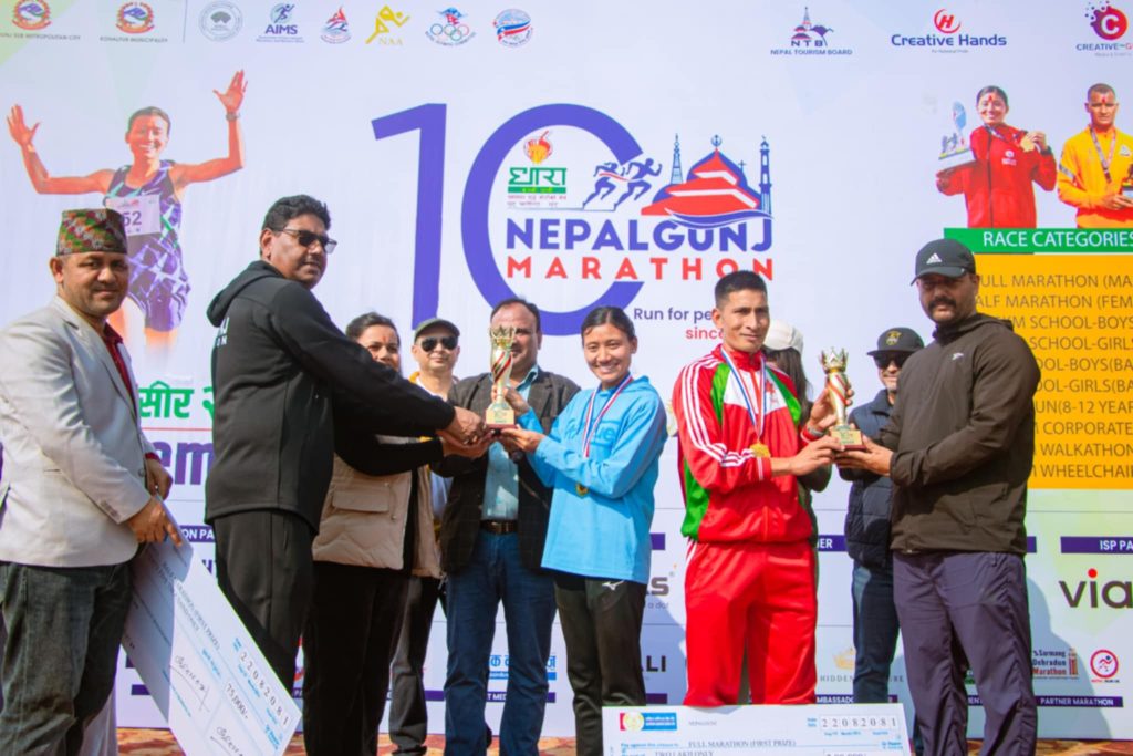 उनीहरुले क्रमशः २५ , १५, १०,८, ७, ६ र ५ हजार रुपैयाँ प्राप्त गरे ।म्याराथन कोर्स नेपालगन्ज उपमहानगरपालिकाको गेटबाट सुरु भई कोहलपुर नगरपालिकादेखि ४ किलोमिटर उत्तर बानियाभार पुगेर सोही रुट भई सुरुवाती बिन्दुमा पुगेर समापन भएको थियो ।