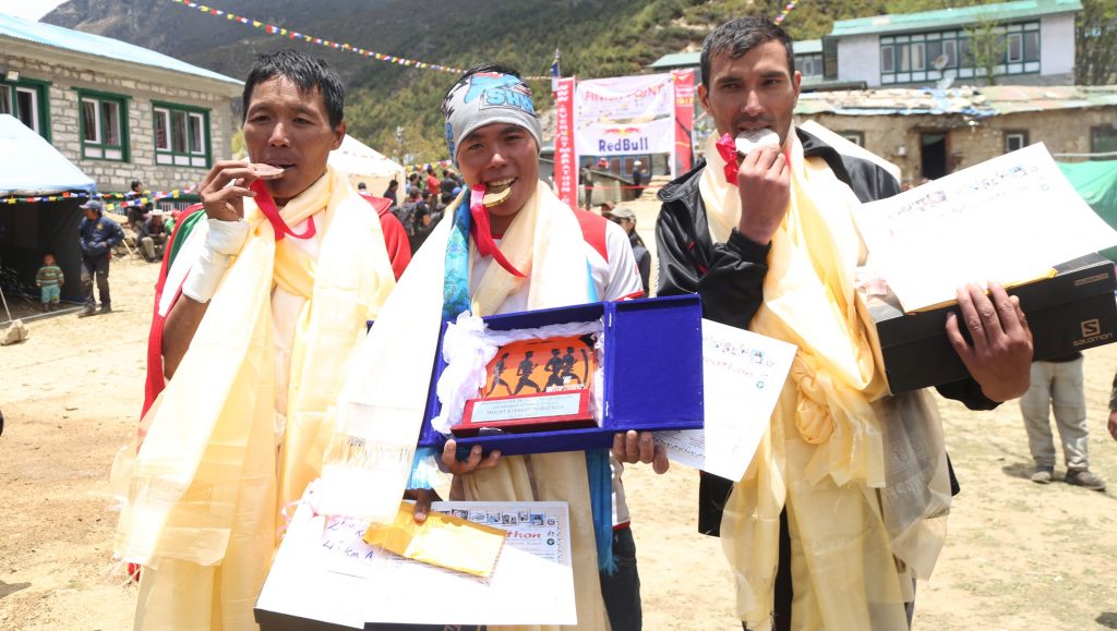 ६० किलो मिटर अल्ट्रातर्फको उपाधि जितेका तीर्थले ६ घन्टा ३८ मिनेट ५६ सेकेन्डमा दुरी पुरा गरेका थिए । आर्मीका मोहन देव जोशी (७ घन्टा १८ मिनेट १६ सेकेन्ड) दोस्रो र सोही क्लबका पूर्ण तामाङ (७ घन्टा ३० मिनेट) तेस्रा भए । तीर्थले संसारकै उचाईमा हुने अल्ट्रा म्याराथनको उपाधि जित्दा फरक अनुभव हुने बताए । ‘मैले धेरै देशमा अल्ट्रा दौडमा भाग लिएको छु । पहिलो स्थान प्राप्त पनि गरेको छु,’ उनले थपे,‘ तर संसारकै अग्लो स्थानमा हुने यो अल्ट्रा दौडमा पहिलो हुँदा अरु भन्दा यो पदक विशेष हुनेछ ।’तीर्थले १ लाख, मोहनले ७५ हजार र पूर्णले ५० हजार रुपैयाँ प्राप्त गरे ।