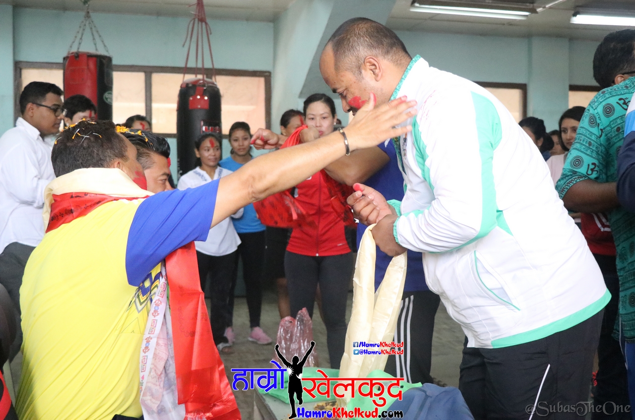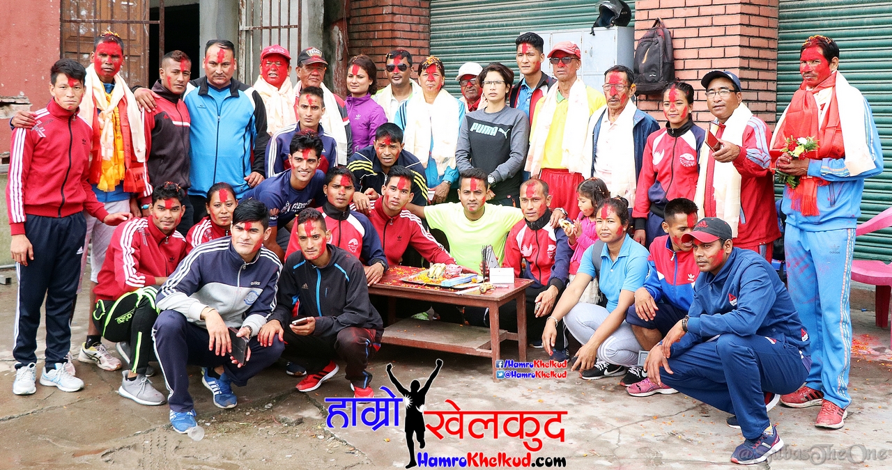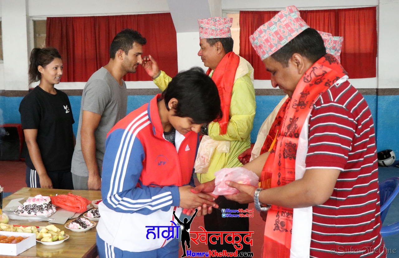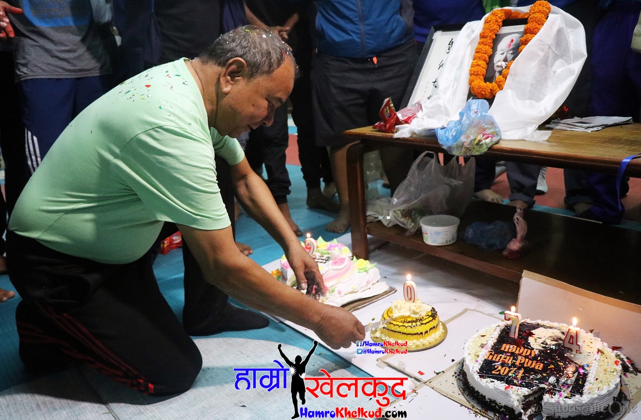 काठमाडौँ (हाम्रो खेलकुद) – गुरु पूर्णिमाको अवसरमा राष्ट्रिय टोलीमा प्रशिक्षण गरिरहेका विभिन्न खेलका खेलाडीले आज दशरथ रंगशालामा आफ्नो गुरुहरु प्रति श्रद्धा व्यक्त गरे। एथलेटिक्स, जुडो, बक्सिङ, उसु, तेक्वान्दो, कराते लगायतका खेलाडीले प्रशिक्षण स्थलमै छुट्टाछुट्टै कार्यक्रम आयोजना गरेका थिए।