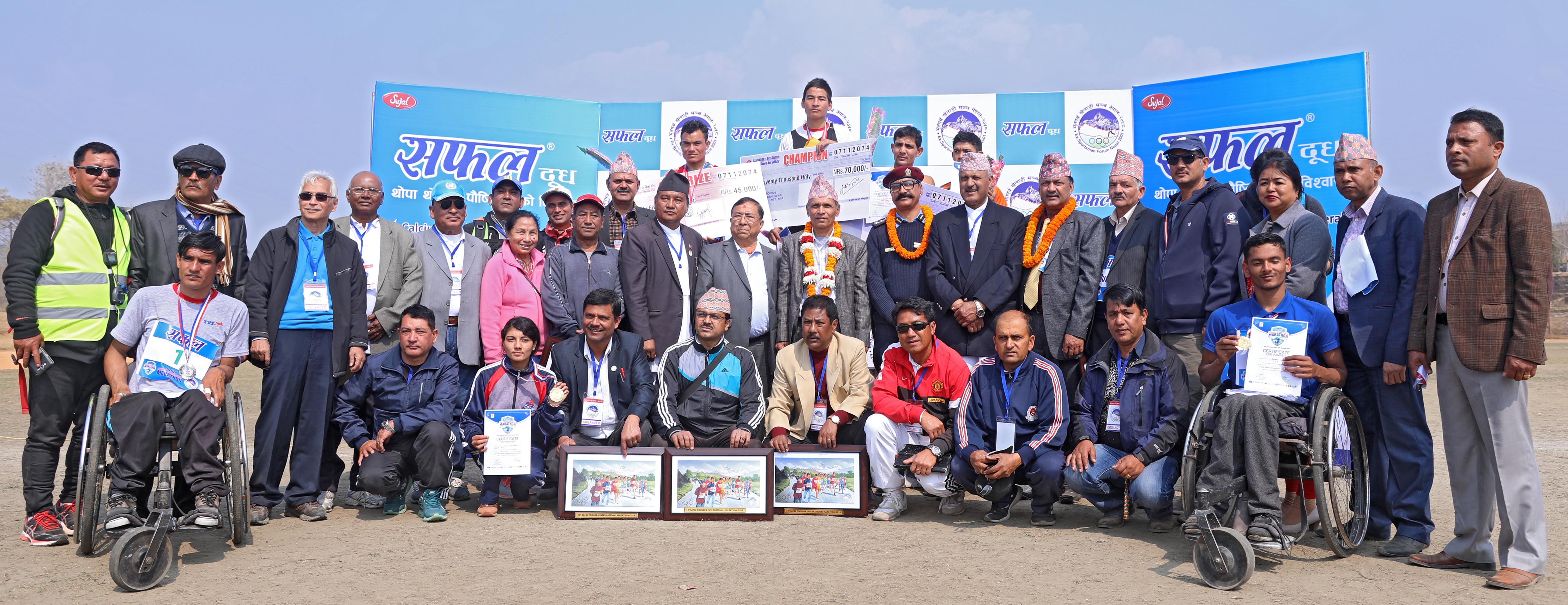 पहिलो पटक आयोजना भएको १ सय मिटर दृष्टी बिहिन पुरुष तर्फ दौडमा आशिष खड्गी पहिलो, दुर्गादत्त पौडेल दोस्रो र राजन चन्द तेस्रो भयो । महिला तर्फ मायाँ गौतम पहिलो , विपना खनाल दोस्रो र मुना अर्याल तेस्रो भइन् । दुवैतर्फका विजेताले ५, दोस्रोले ३ र तेस्रो हुने खेलाडीले २ हजार रुपैयाँ प्राप्त गरे ।