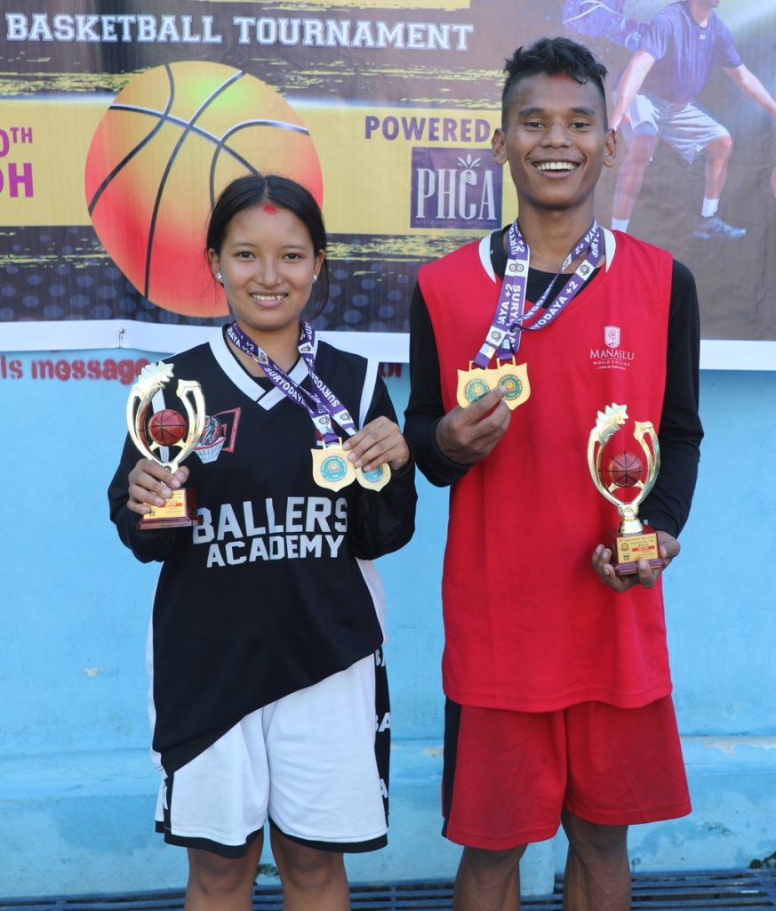 काठमाडौं(हाम्रो खेलकुद) – मनास्लु वल्र्ड कलेज र बलर्स बास्केटबल एकेडेमीले चौथो सूर्योदय एसइइ खुला थ्री बाइ थ्री बास्केटबल प्रतियोगिताको उपाधि रजितेका छन् । मनास्लु ब्वाइज तथा बलर्स गल्र्समा च्याम्पियन बने ।