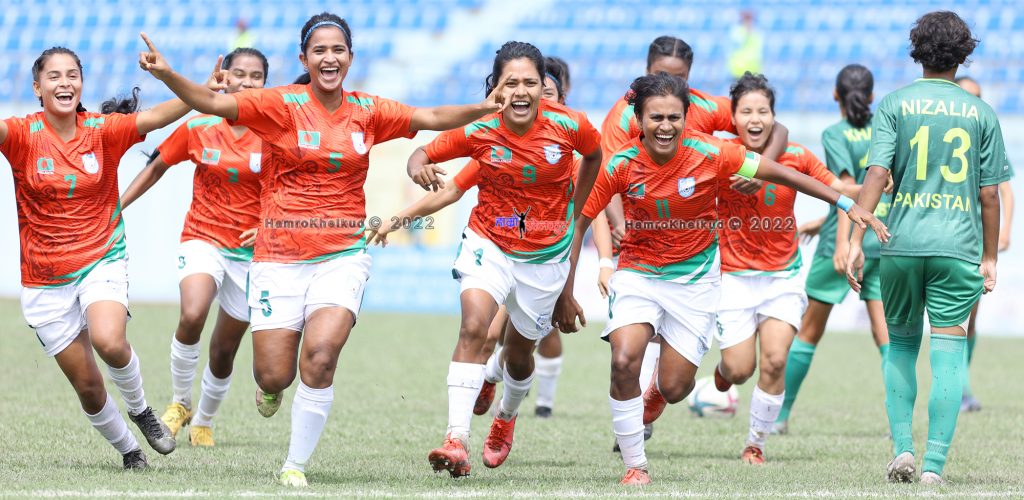 काठमाडौं (हाम्रो खेलकुद) – छैटौं महिला साफ च्याम्पियनसिप २०२२ अन्तर्गत समूह ए को खेलमा पाकिस्तान र बंगलादेश खेल्दैछन् । पहिलो हाफको समाप्तिमा बंगलादेश ४-० ले अघि छ ।