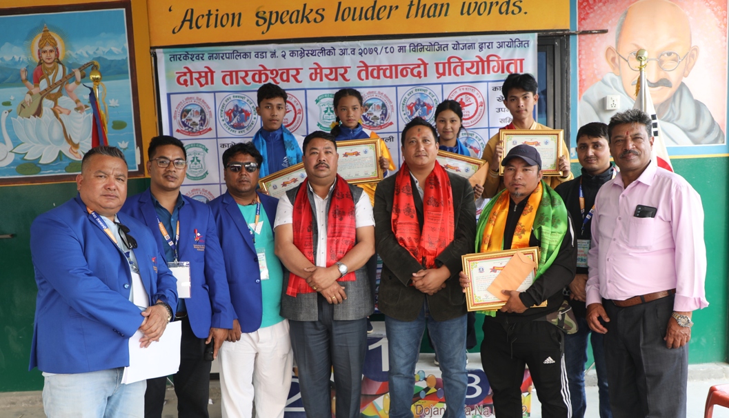 काठमाडौं (हाम्रो खेलकुद) – भारतको पञ्जाबमा भएको प्रथम इन्डो–नेपाल अन्तर्राष्ट्रिय र्मासल आर्ट प्रतियोगितामा पदक जित्न सफल ताकेश्वर उमा कुङफुका खेलाडीलाई काभ्रेस्थली खेलकुद उपभोक्ता समितिले शनिबार नगदसहित सम्मान गरेको छ । काभ्रेस्थलीको ग्रिन हिल्स एकेडेमीमा भएको दोश्रो तारर्केश्वर मेयर कप तेक्वान्दो प्रतियोगिताको समापनका अवसरमा खेलाडी र प्रशिक्षकलाई सम्मान गरिएको हो । सम्मानित हुने खेलाडीमा स्वर्ण र […]