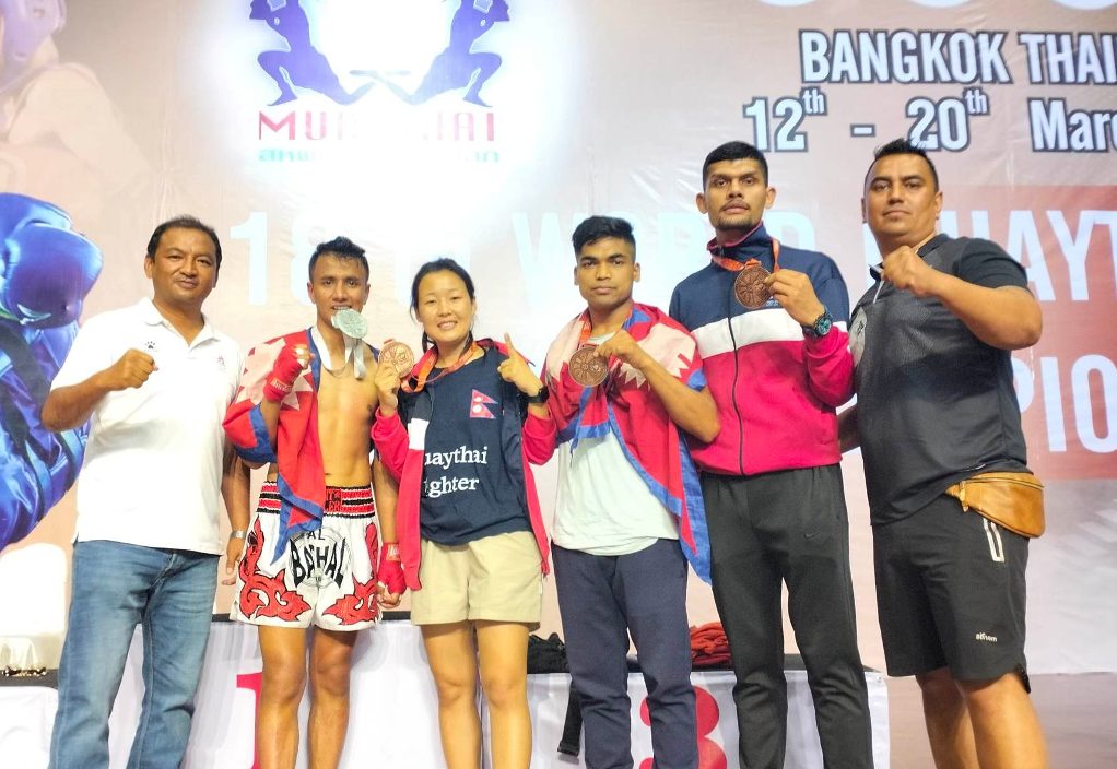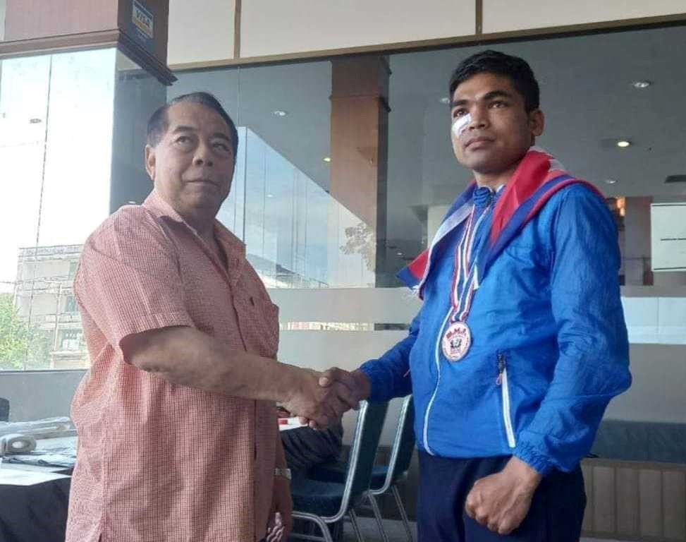 काठमाडौं (हाम्रो खेलकुद) – थाइल्यान्डको बैंककमा भएको १९ औं मुवाँथाई विश्व च्याम्पियनसिपमा पदक जितेका खेलाडी मंगलबार नगदसहित सम्मानित भएका छन् । नेपाल राष्ट्रिय मुवाँथाई संघले आफ्ना खेलाडीलाई सम्मान गरेको हो । नेपाली खेलाडीले मार्च १२ देखि २० तारिखसम्म भएको प्रतियोगितामा १ एतिहासिकसहित २ स्वर्ण, २ रजत र १ कांस्य पदक जितेका थिए । गुणराज रुचालले […]