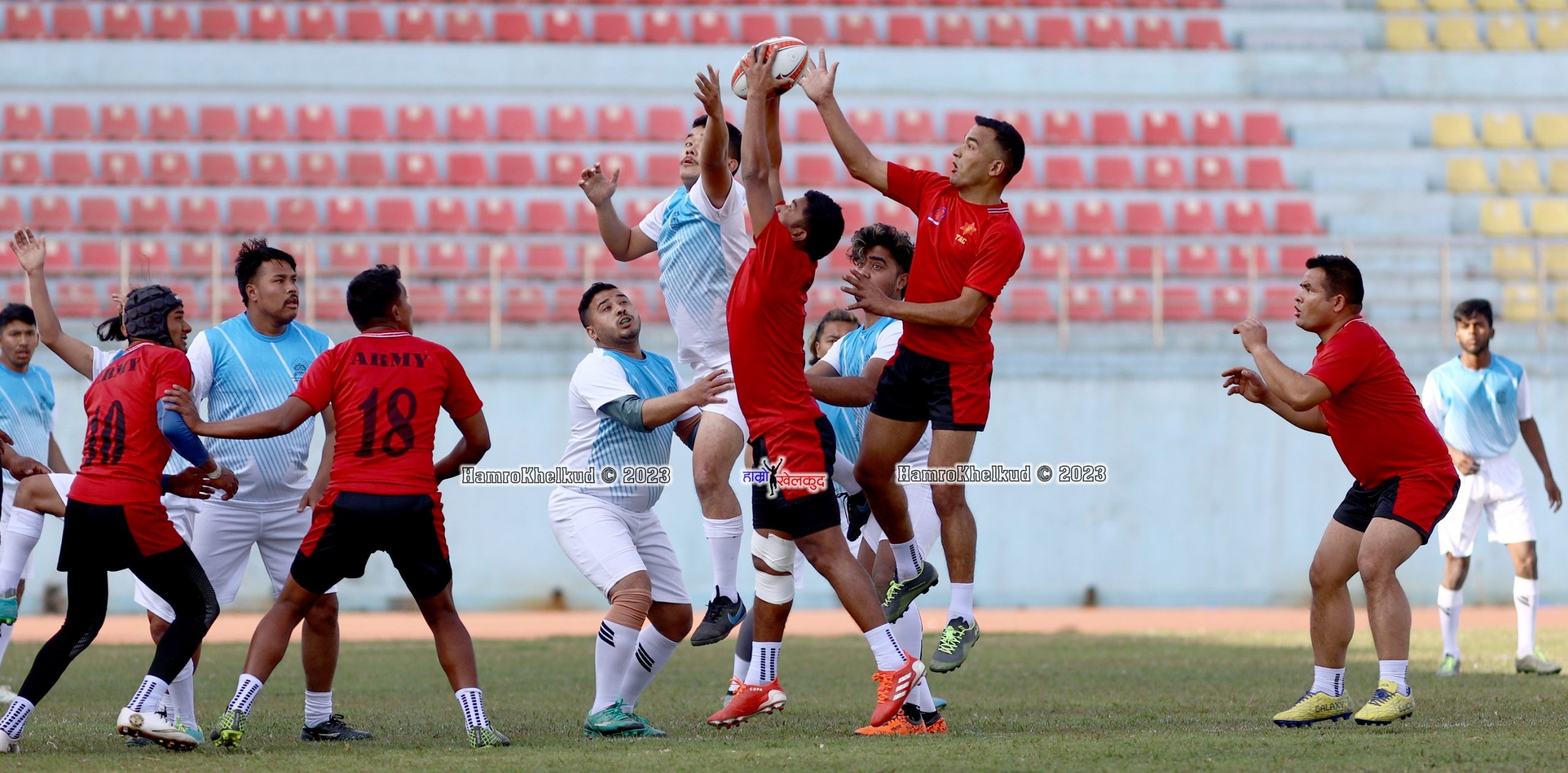 काठमाडौं (हाम्रो खेलकुद) – नेपाल रग्बी संघको आयोजनामा जारी तेस्रो राष्ट्रिय क्लब रग्बी फिफ्टिन्स लिगमा त्रिभुवन आर्मी क्लब र गोर्खाली रग्बी क्लबले लगातार दोस्रो जित हासिल गरेका छन् । दशरथ रंगशालामा बुधबार भएको पहिलो खेलमा आर्मील हिमालयन रग्बी क्लबलाई ७५–१० को अन्तरले पराजित गरेको छ । अर्को खेलमा गोर्खालीले आकाश भैरवलाई ७६–३ ले हराएको थियो […]