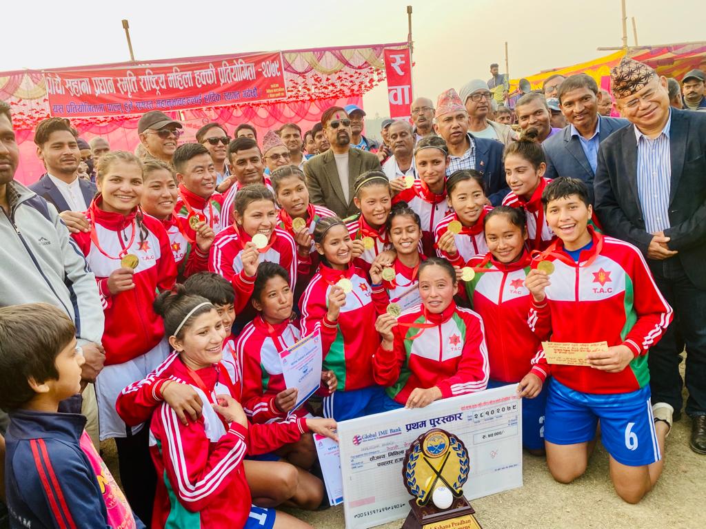 काठमाडौं (हाम्रो खेलकुद) – नेपाल आर्मीले पाँचौं साहाना प्रधान स्मृति महिला हक्की प्रतियोगिताको उपाधि शनिबार जितेको छ । जनकपुरमा भएको फाइनलमा आर्मीले लुम्बिनी प्रदेशलाई २–१ गोलले पराजित ग¥यो । आर्मीकी सीतामाया बल र सरस्वती तामाङले गोल गरे । लुम्बिनीकी अन्नया बरुवालले गोल फर्काइन् । लुम्बिनीकी पूजा कुमारी उत्कृष्ट खेलाडी, लुम्बिनीकी प्रतिमा सरोज उत्कृष्ट गोलरक्षक तथा […]