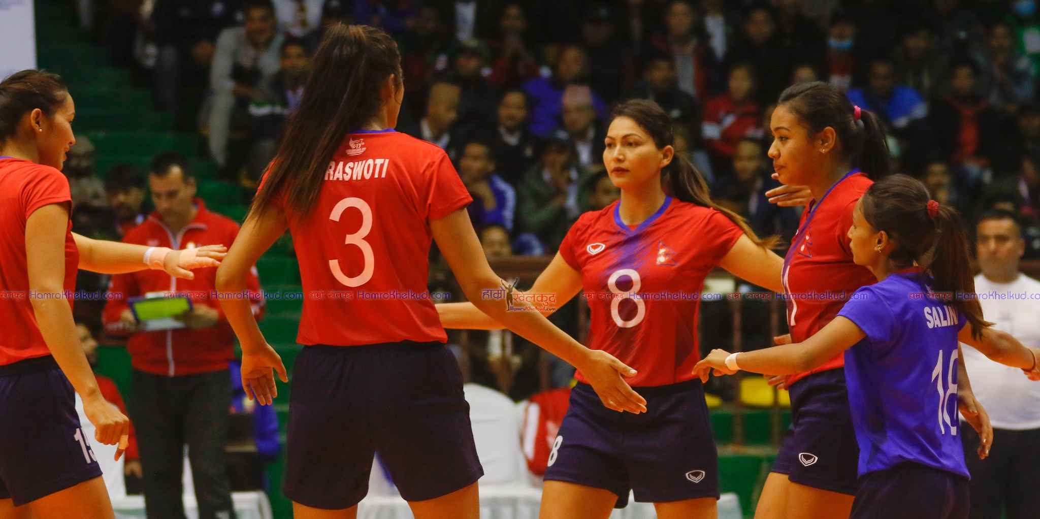 काठमाडौं (हाम्रो खेलकुद) – नेपाली महिला भलिबल टोलीले १३ औं दक्षिण एसियाली खेलकुद (साग) अन्तर्गत महिला भलिबलको सेमिफाइनलमा श्रीलंकासँग प्रतिस्पर्धा गरि रहेको छ । त्रिपुरेश्वर स्थित राखेप कभर्डहलमा जारी दोस्रो सेमिफाइनलमा पहिलो सेटमा नेपालले श्रीलंकालाई २५-१४ को सोझो सेटमा पराजित गरेको छ । नेपाल समूह ‘ए’ उपविजेता तथा श्रीलंका समूह ‘बी’ को विजेताका रुपमा सेमिफाइनलमा प्रतिस्पर्धा […]