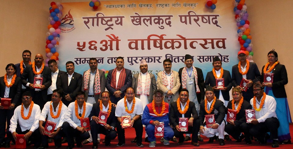 काठमाडौं (हाम्रो खेलकुद )- सन्तोषी बैद्य र गंगाराम महर्जन राष्ट्रिय खेलकुद परिषद्(राखेप) का बर्ष सर्वोकृष्ट कर्मचारीबाट पुरस्कृत भएका छन् । राखेपको ५६ औं बार्षिकोत्सवको समापनका अवसरमा बिहीबार प्रशासनिक कर्मचारीमा बैद्य र प्रशिक्षकमा महर्जनलाई बर्षको सर्वोकृष्ट परिषद् सेवा पदक पुरस्कारले सम्मान गरेको हो । बैद्य नुवाकोट जिखेबिसमा कार्यरत छिन् । महर्जन ललिपुर जिखेविसमा कार्यरत कराँतेका सहायक […]