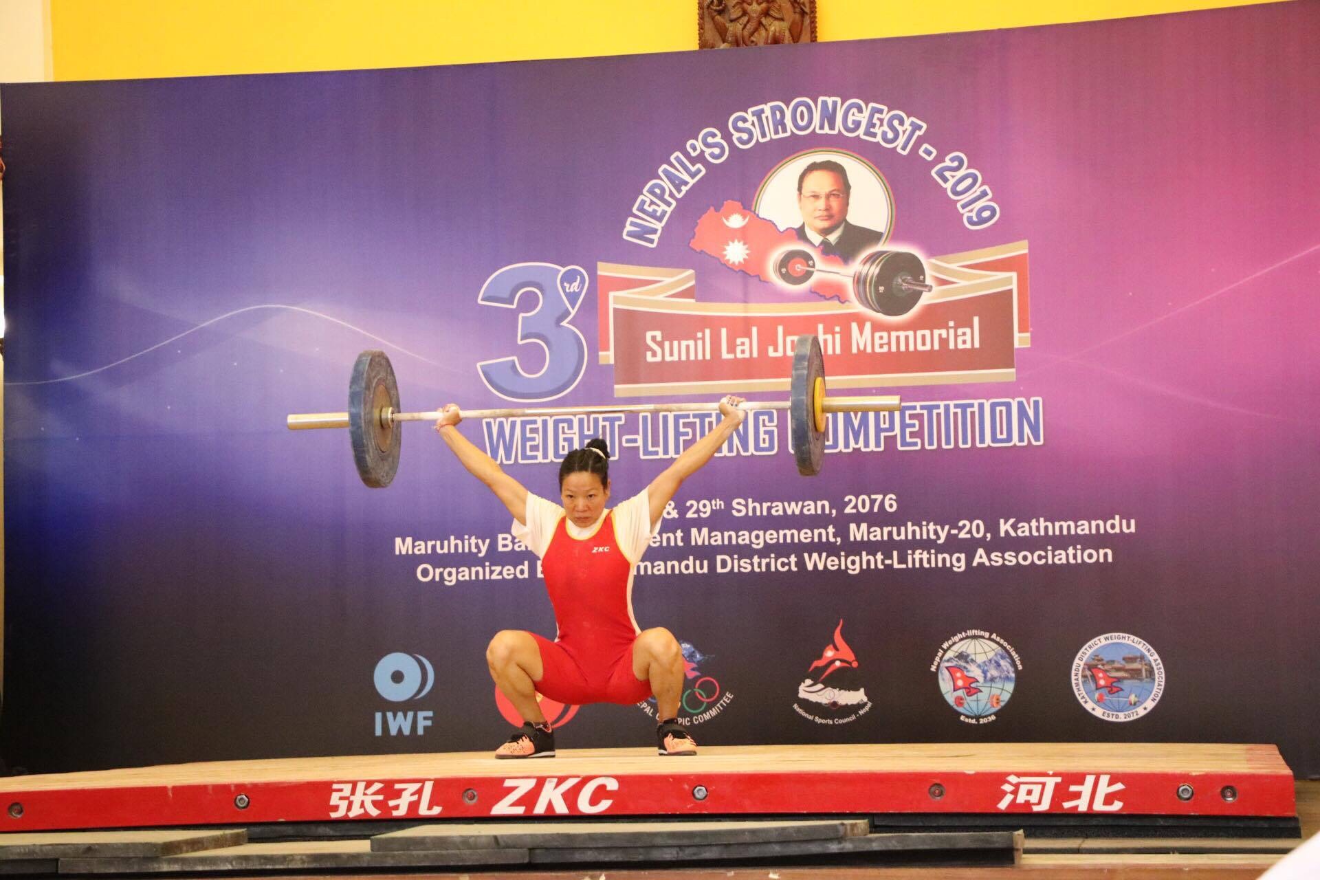 काठमाडौं (हाम्रो खैलकुद)-विभागीय नेपाल पुलिस क्लबकी संगीता राईले नेपाल स्ट्रङ्गेष्ट तेश्रो सुनिललाल जोशी स्मृती राष्ट्रिय भारोत्तोलन च्याम्पियनसिपमा एकै दिन तीन नयाँ राष्ट्रिय कीर्तिमान बनाएकी छिन् । मरु बैङक्वेटमा सोमबारबाट शुरु भएको प्रतियोगिताको पहिलो दिन संगिता राईले सिनियर ४९ केजीमा तीन राष्ट्रिय किर्तिमान बनाउन सफल भएकी छिन् । उनले स्न्याचमा ५९ केजी, क्लिन एण्ड जर्कमा ७६ […]