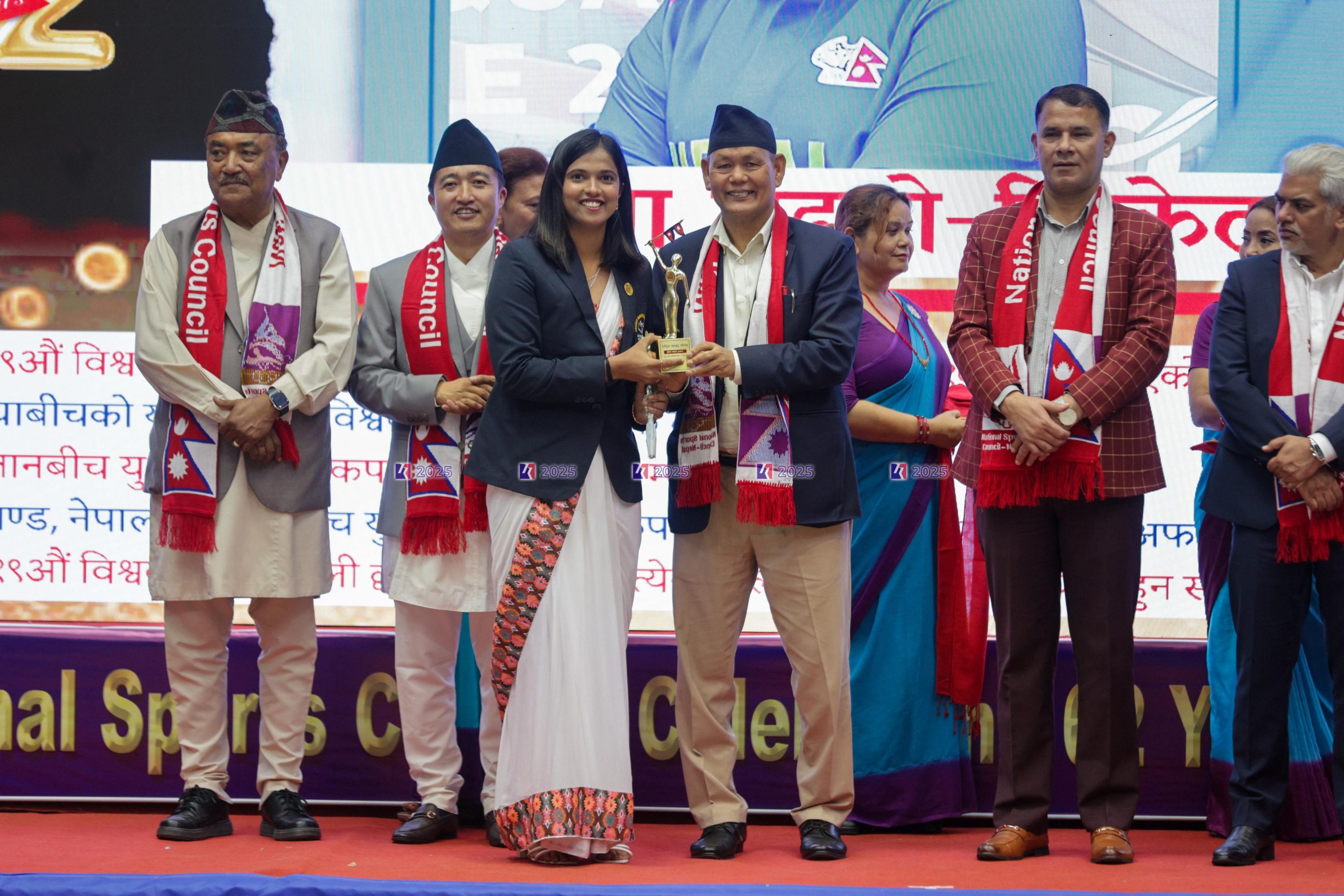 काठमाडौं (हाम्रो खेलकुद)- राष्ट्रिय खेलकुद परिषद् (राखेप) को ६२ औं वार्षिकोत्सवको अवसरमा आज खेलाडी, प्रशिक्षक, संघ, कर्मचारी तथा खेलकर्मीलाई सम्मान गरिएको छ। पेरिस पारालिम्पिक्समा ऐतिहासिक कास्य जितेकी पलेशा गोवर्धनलाई पारा खेलाडी वर्ष पुरस्कार प्रदान गरिएको छ। पलेशालाई ५० हजार रुपैयाँ सहित सम्मान गरियो। राष्ट्रिय खो-खो टोली महिला र पुरुष दुबै टोलीले उत्कृष्ट खेलाडीको अवार्ड प्राप्त […]