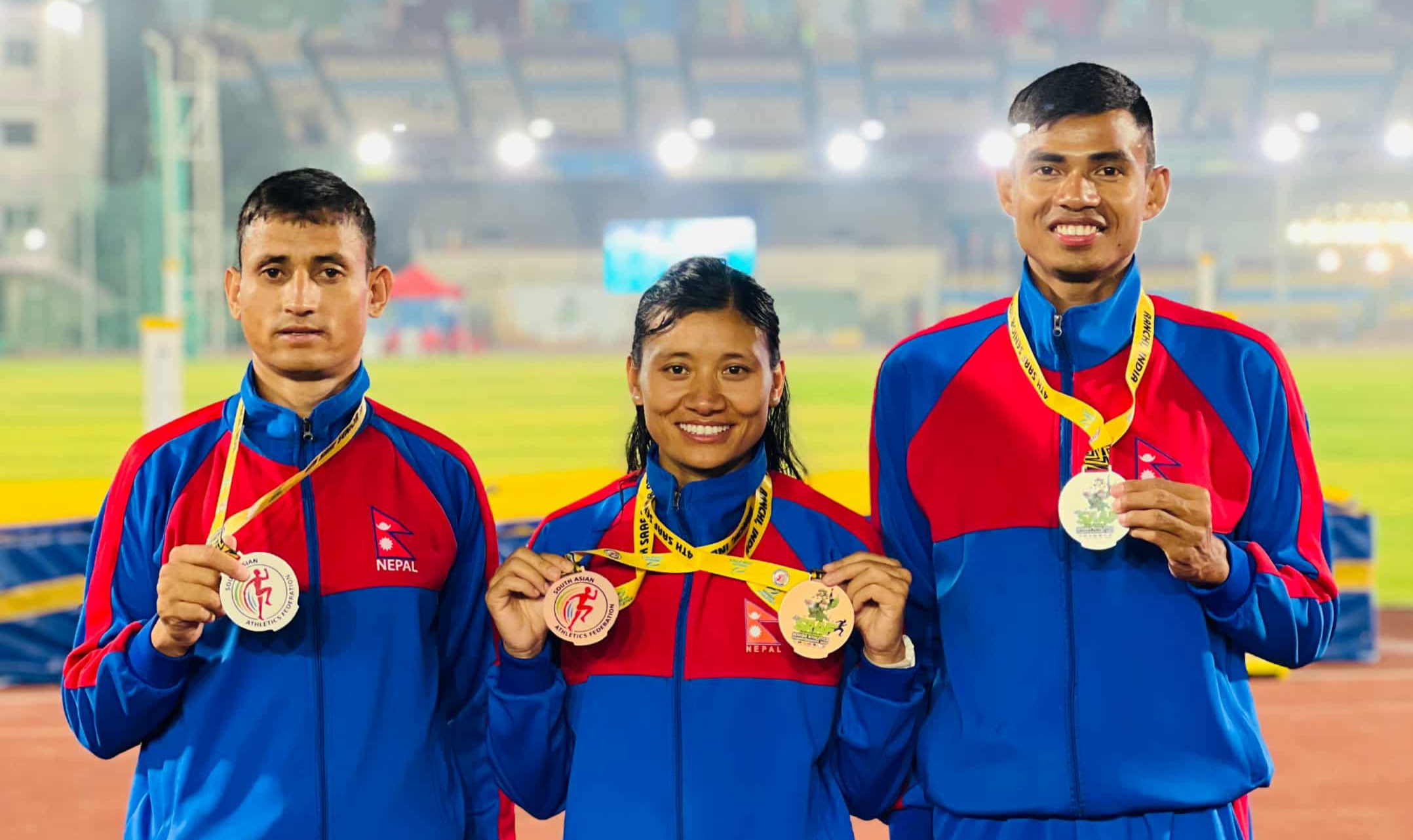 काठमाडौं (हाम्रो खेलकुद)- नेपाल एथलेटिक्स संघले भारतको राँचीमा भएको चौथो दक्षिण एसियाली सिनियर एथलेटिक्स च्याम्पियनसिपका पदक विजेता खेलाडीलाई शुक्रवार नगदसहित सम्मान गरेको छ। नेपाली खेलाडीले २ रजत र ४ कास्य पदक जितेका थिए। एथलेटिक्स संघले रजत विजेतालाई जनही २५ हजार, कास्य पदक विजेतालाई १५ तथा रिलेमा कास्य पदक विजेतालाई १० हजार रुपैयाँ प्रदान गरेको थियो। […]