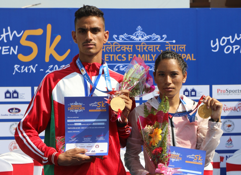 काठमाडौं (हाम्रो खेलकुद) – त्रिभुवन आर्मी क्लबका मुकेश बहादुर पाल र नेपाल प्रहरीकी राममाया बूढा युथ ओपन फाइभ के रनको च्याम्पियन बनेका छन् । एथलेटिक्स परिवार, नेपालद्वारा आयोजित दौडको पुरुषमा मुकेशले निर्धारित दूरी १५ मिनेट २७.८ सेकेन्डमा पूरा गर्दै पहिलो भएका हुन् । आर्मीकाद्वय श्रीकाश राईले १६ मिनेट ०८.६ सेकेन्डसहित दोस्रो स्थान हासिल गर्दा सुशिलकुमार […]