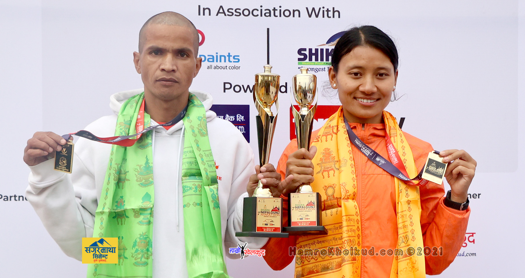 नेपालगन्ज (हाम्रो खेलकुद) – सातौं संस्करणको धारा नेपालगन्ज म्याराथनको उपाधि नेपाल एपिएफ क्लबका किरण सिंह बोगटी तथा महिलातर्फ हाफ म्याराथनको उपाधि सन्तोषी श्रेष्ठले जितेका छन् । १३ औं दक्षिण एसियाली खेलकुद (साग) का विजेताद्वय किरण र सन्तोषीले नेपालगन्जमा उपाधि जितेका हुन् । किरणले निर्धाति दुरी २ घण्टा २९ मिनेट ४१ सेकेन्डमा पूरा गर्दै विजेता बनेका […]