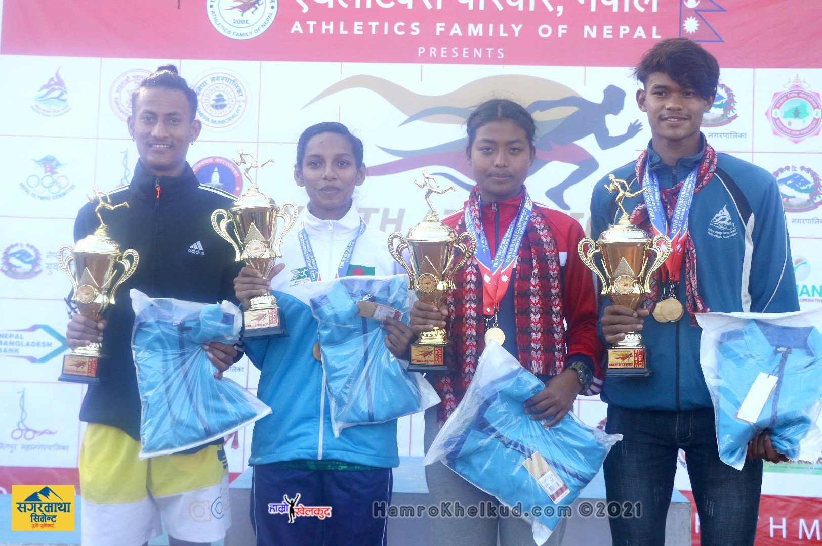 काठमाडौं (हाम्रो खेलकुद) – बंगलादेशकी सुमाया देवान र नेपालका युवराज विक युथ एथलेटिक्स च्याम्पियनसिपको यू २० का सर्वोत्कृष्ट खेलाडी चुनिएका छन् । एथलेटिक्स परिवार नेपालले आयोजना गरेको दुई दिने प्रतियोगिताको अन्तिम दिन मंगलबार सर्वोत्कृष्ट खेलाडी घोषणा गरिएको हो । गर्ल्सतर्फ सुमाया र ब्वाइजतर्फका युवराज दुवैको एक सय मिटर दौडका स्वर्ण पदक विजेता हुन् । युवराजले […]