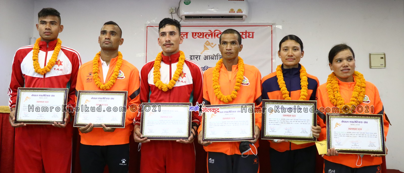 काठमाडौं (हाम्रो खेलकुद) – डेढ वर्षअघि स्वदेशमा आयोजना भएको १३औं दक्षिण एसियाली खेलकुद (साग) का पदक विजेतालाई नेपाल एथलेटिक्स संघले नगदसहित सम्मानित गरेको छ । नेपाल एथलेटिक्स संघका अध्यक्ष राजीवविक्रम शाहले सागमा स्वर्ण पदक विजेता खेलाडीलाई व्यक्तिगत रुपमा १ लाख रुपैयाँ पुरस्कार दिने घोषणा गरे बमोजिम खेलाडीलाई पुरस्कृत गरेका हुन् । सागमा नेपालले ३ स्वर्ण, […]