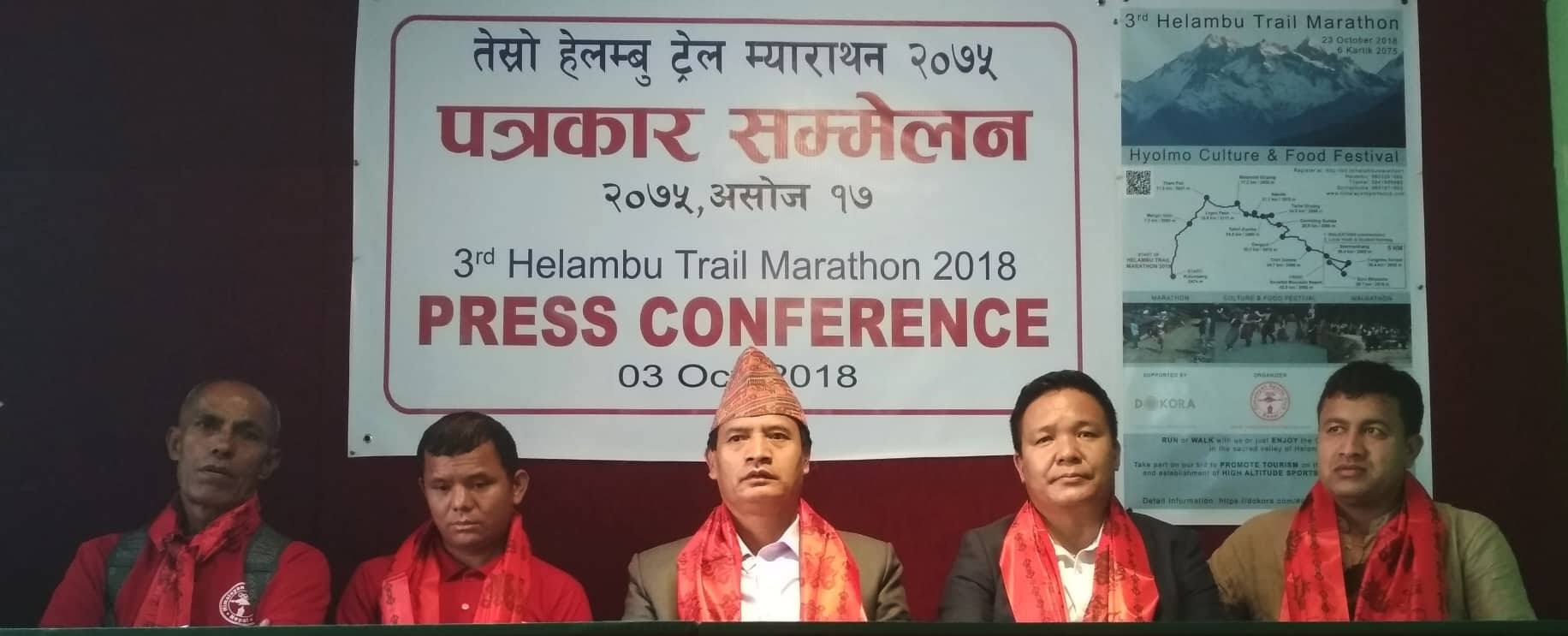 काठमाडौं (हाम्रो खेलकुद) – तेस्रो संस्करणको हेलम्बु ट्रेल म्याराथन प्रतियोगिता कार्तिक पहिलो साता हुने भएको छ । आयोजक हिमालय स्पोर्ट्स क्लबले बुधबार राजधानीमा पत्रकार सम्मेलनको आयोजना गर्दै हेलम्बु ट्रेल म्याराथन कार्तिक ६ गते हुने जनाकारी गराएको हो । प्रदेश नम्वर ३ को सिन्धुपाल्चोक जिल्लाको हेलम्बुमा हुने म्याराथनमा तीन विधामा प्रतिस्पर्धा हुनेछ । जसमा फुल म्याराथन, […]