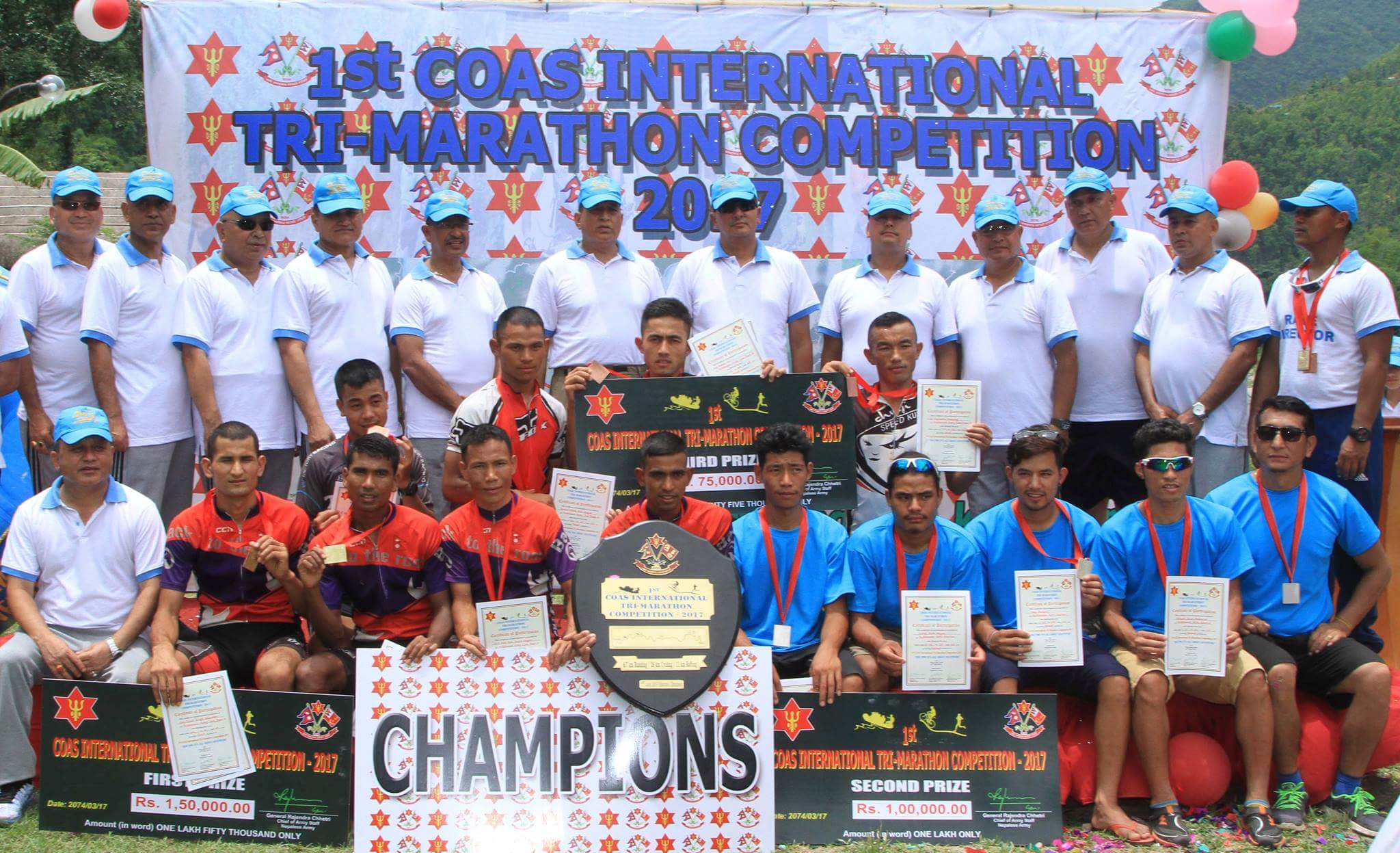 काठमाडौं(हाम्रो खेलकुद) – आयोजक नेपाली सेनाको त्रिभुवन आर्मी क्लबको टिम ‘ए’प्रथम प्रधानसेनापति अन्तर्राष्ट्रिय ट्राइ म्याराथन (रनिङ, साईक्लिङ र र्याफ्टिङ) को च्याम्पियन बनेको छ । शनिबार धादिङमा भएको प्रथम ट्राइ म्याराथनमा आयोजक आर्मीको ‘ए’ टिमले निर्धारित ४३.६ किलोमिटर दुरी २ घण्टा १८ मिनेट ०१ सेकेण्डमा पूरा गर्दै च्याम्पियन बनेको हो । ट्राइ म्याराथन धादिङको बैरेनीदेखि चरौंदीसम्म […]