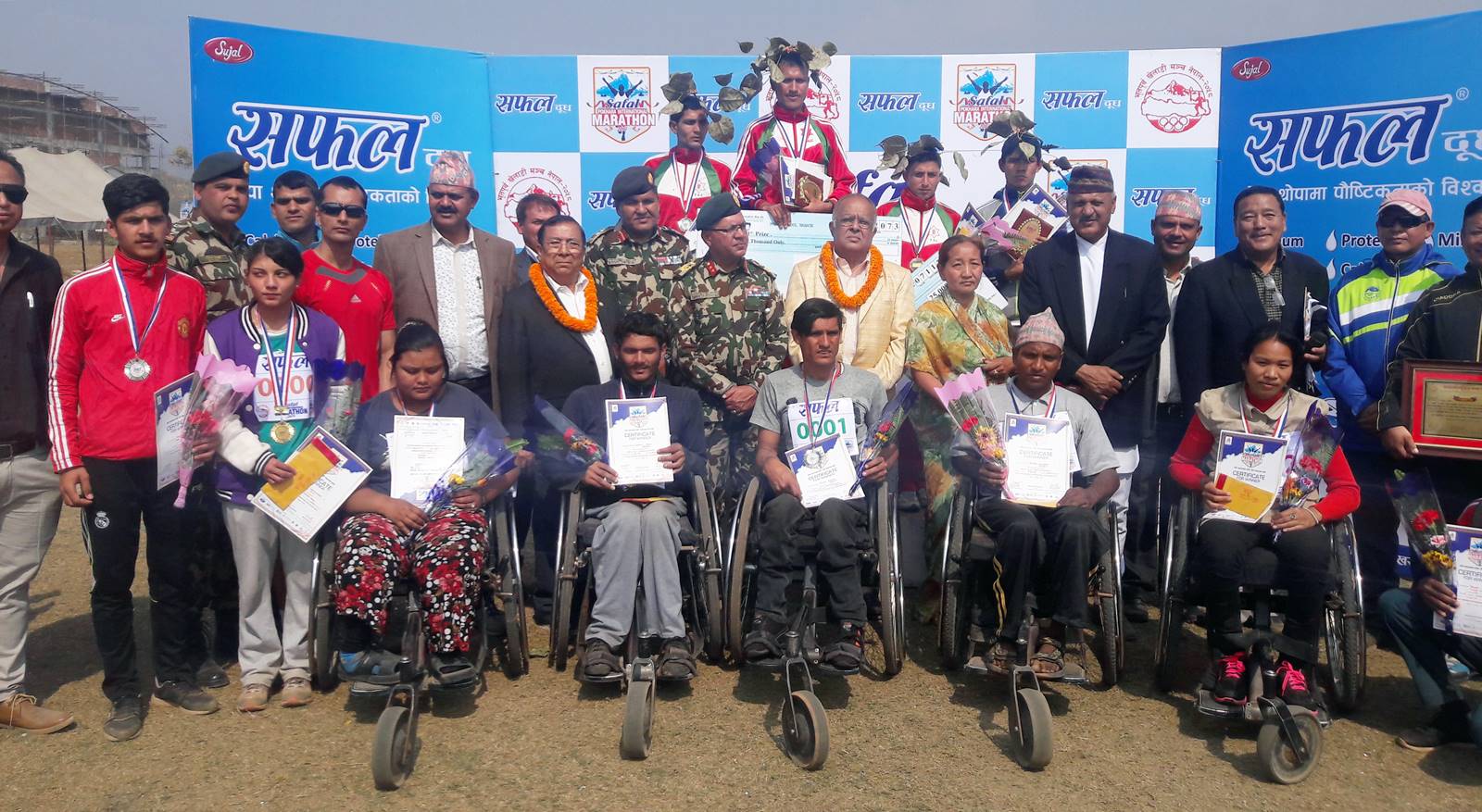 पोखरा (हाम्रो खेलकुद) – त्रिभुवन आर्मी क्लवका नवराज साउदले सफल पोखरा म्याराथन २०७३ को उपाधि जितेका छन । पोखरामा आज (शनिबार) सम्पन्न भएको ११ औं संस्करणको उक्त प्रतियोगितामा एक सय ६९ जना धावकलाई पछि पार्दै उनले उपाधि सहित ६० हजार नगद हात पार्न सफल भए। ४२ कि.मी. १९५ मीटरको दुरी उनले २ घण्टा ३४ मिनेट […]