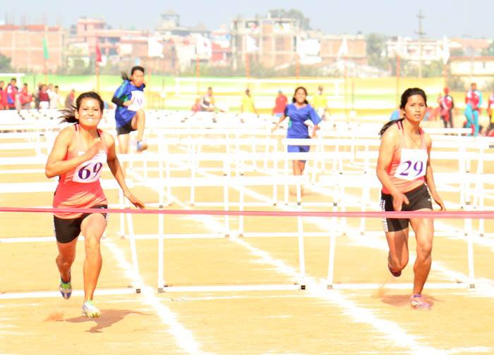 इटहरी – (हाम्रो खेलकुद) – इटहरी रङशालामा सम्पन्न ४०० मिटर हर्डल्समा त्रिभुवन आर्मिकी दुर्गा देबकोटाले १०० मिटर बिजेता सशस्त्र प्रहरीकी सविता चौधरीलाई पछी पार्दै स्वर्ण पदक जितेकी छिन । दुर्गाले निर्धारित दूरी १ मिनेट १० दशमलब १६ सेकेण्डका साथ स्वर्ण पदक जितेकी हुन् । त्यस्तै १ मिनेट १० दशमलब ६१ सेकेण्डका साथ थोरै समयले पछी परेकी […]