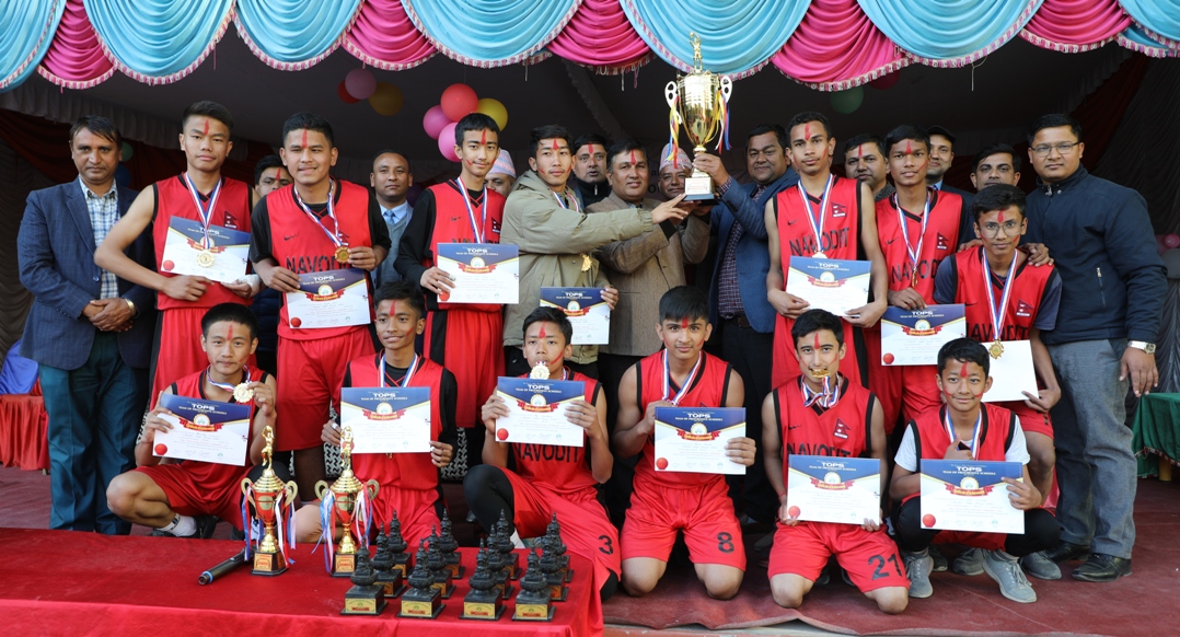 काठमाडौं (हाम्रो खेलकुद) – नवोदित स्कुलले टिम अफ प्रोग्रेसिभ स्कुल (टप्स) द्वारा आयोजित टप्स अन्तरविद्यालय छात्र बास्केबटल प्रतियोगिताको उपाधि आइतबार जितेको छ । प्रतियोगिताको फाइनलमा नवोदितले स्वेता सदनलाई ५३–३० ले पराजित ग¥यो । नवोदितका पुजन थपलियाले ३२ स्कोर गरे । पुजननै ‘मोस्ट भेलुएबल प्लेयर’ घोषित भए । मैपीस्थित गण्डकी पब्लिकको कोर्टमा भएको प्रतियोगितामा ह्वाइट हेभन […]