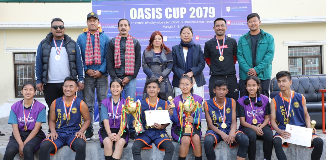 काठमाडौं (हाम्रो खेलकुद) – रेडिअन्ट पब्लिक र एनसीसीएसले दोश्रो ओएसिस कप उपत्यकाव्यापी थ्री बाइ थ्री बास्केटबल प्रतियोगिताको उपाधि सोमबार जितेका छन् । रेडिअन्ट सिनियर ब्वाइज तथा एनसीसीएस सिनियर गल्र्समा च्याम्पियन बनेकाे हाे । ढोलाहिटीस्थित आयोजक ओएसिस इङलिस स्कुलको कोर्टमा भएको सिनियर ब्वाइज फाइनलमा रेडिअन्टले एरिस एकेडेमीलाई १२–७ ले पराजित ग¥यो । रेडिअन्टको जितमा सुवास गौतमले […]