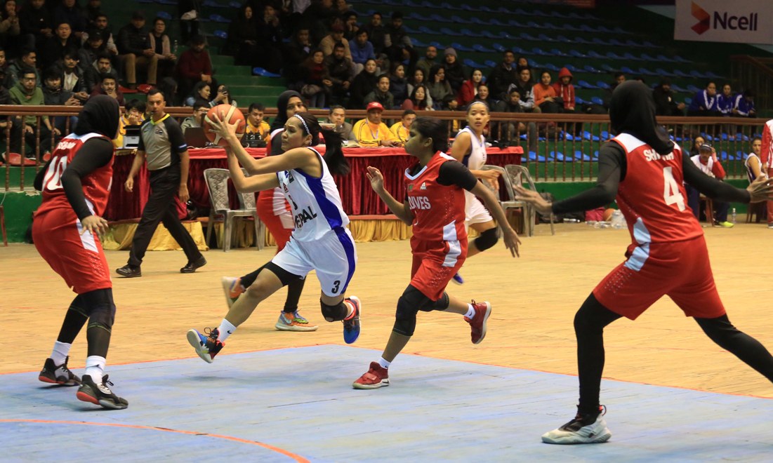 काठमाडौं (हाम्रो खेलकुद) – राष्ट्रिय बास्केटबल टोली १३ औं दक्षिण एसियाली खेलकुद (साग) अन्तर्गत महिला बास्केटबलको फाइनल पुगेको छ । माल्दिभ्सलाई हराउँदै नेपाल टोली पहिलो पटक सागको फाइनलमा पुगेको हो । राष्ट्रिय खेलकुद परिषद् (राखेप) को कभर्ड हलमा सोमबार भएको सेमिफाइनलमा नेपालले माल्दिभ्सलाई ६८–५५ हराउँदै कम्तीमा रजत पदक पक्का गरेको छ । मंगलबार हुने फाइनलमा […]