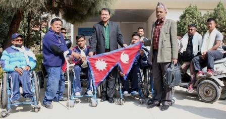 काठमाडौं (हाम्रो खेलकुद) – भारतमा हुने व्हील चेयर क्रिकेट र बास्केटबल प्रतियोगितामा भाग लिन नेपाली टोली शनिबार त्यसतर्फ प्रस्थान गर्दैछ । भारत जाने खेलाडी हिमाल अर्याल, भरत कार्की, तिलकराम पोखरेल क्षेत्री, अकल तामाङ, डिगमसिंह चेम्जोङ, धनमान तामाङ, रामबहादुर तामाङ, साजन श्रेष्ठ छन् । त्यस्तै राजु गुरुङ, डम्बर मगर, दानबहादुर थिङ, दण्ड बुढाथोकी, विष्णु श्रेष्ठ, रामकाजी […]