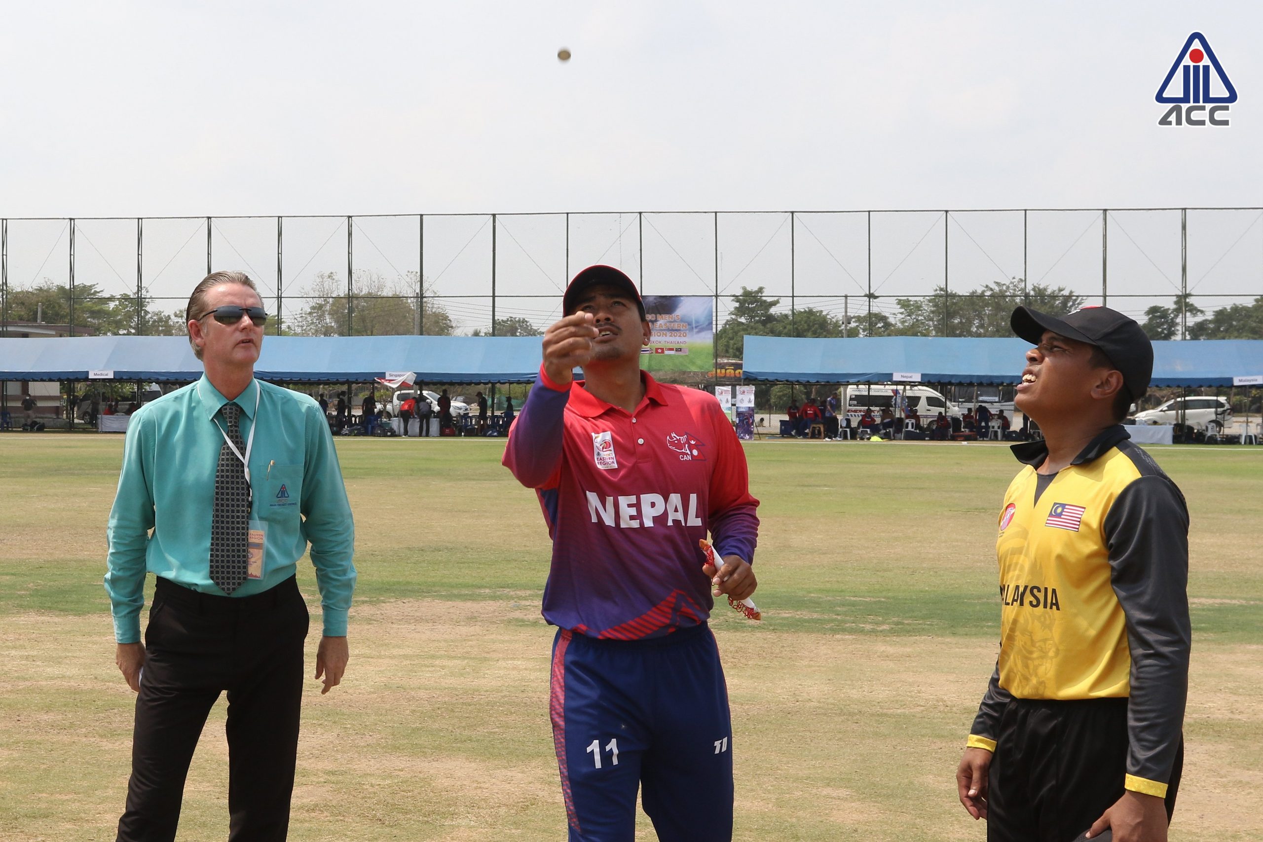 काठमाडौं (हाम्रो खेलकुद) – एसीसी इस्टर्न रिजन टि२० क्रिकेट प्रतियोगितामा नेपालले आफ्नो पहिलो खेलमा मलेसिया विरुद्ध पहिला फिल्डिङ गर्ने भएको छ । थाईल्यान्डको बैंकक स्थित टेर्डथाई क्रिकेट मैदानमा भएको टसमा मलेसियाका कप्तान मोहमद फैजले टस जितेर पहिला ब्याटिङ गर्ने निर्णय लिएका हुन् । दुवै टोली प्रतियोगितामा विजयी सुरुवात गर्ने सोचमा रहेका छन् । हङकङसँगको पाँच […]