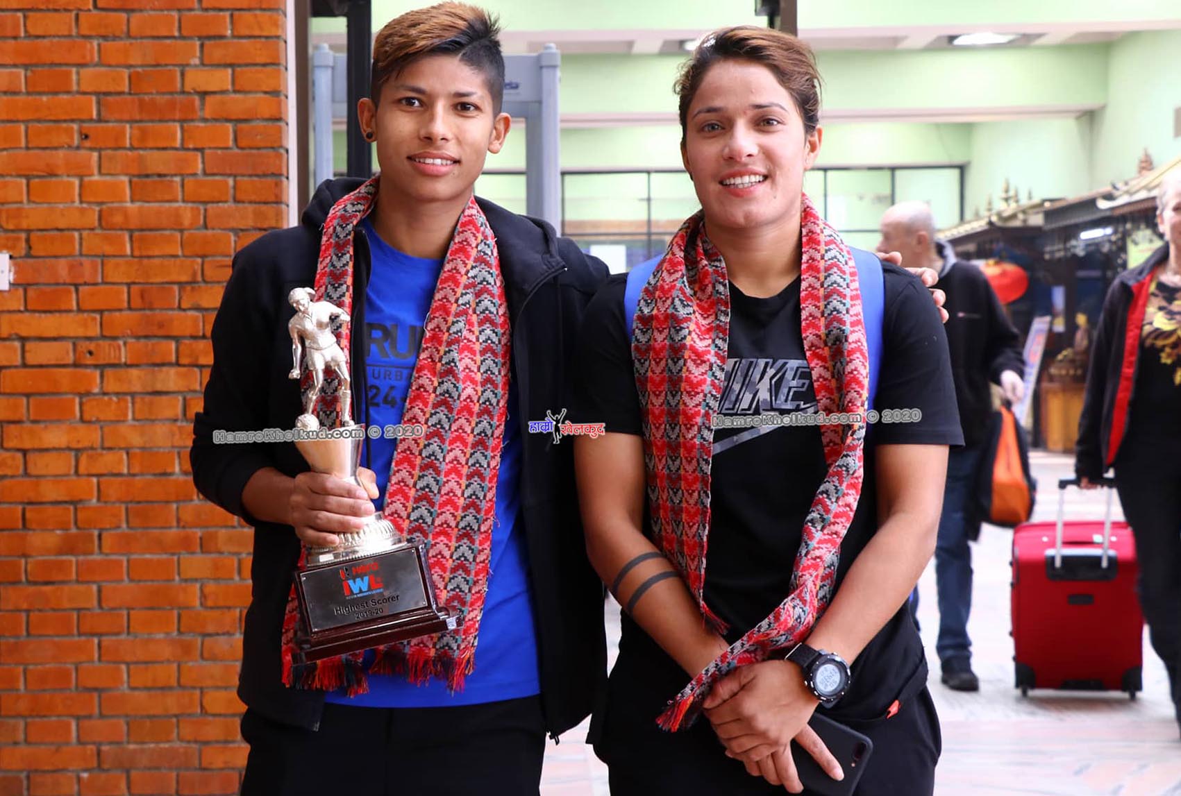 काठमाडौं (हाम्रो खेलकुद) – भारतीय महिला लिग (आईडब्लूएल) मा उच्च प्रदर्शन गर्दै राष्ट्रिय महिला टोली एवं एपिएफकी फरवार्ड सावित्रा भण्डारी (साम्बा) र मिडफिल्डर अनिता बस्नेत सोमबार स्वदेश फर्किएका छिन् । शुक्रबार भएको फाइनलमा क्रिप्सा एफसीलाई ३–२ ले हराउँदै सावित्रा सम्मिलित गोकुलम केरला एफसी लिग उपाधि जितेको थियो । सावित्राको निर्णायक गोलमा गोकुलम च्याम्पियन बनेको थियो […]