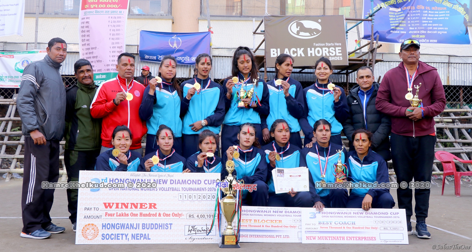 काठमाडौं (हाम्रो खेलकुद)– नेपाल एपिएफ क्लबले होंगान्जी न्यू डायमण्ड भलिबल प्रतियोगिताको उपाधि जितेको छ । आयोजक न्यू डायमण्ड क्लबलाई आइतबार ३–० को सोझो सेटमा हराउँदै एपिएफ उपाधि रक्षा गर्न सफल भएको हो । लगातार तेस्रो संस्करणमा भिडेका यी दुई टोलीबीचको पछिल्लो दुई संस्करण एपिएफले जितेको हो । पहिलो संस्करण भने न्यू डायमण्डले जितेको थियो । […]