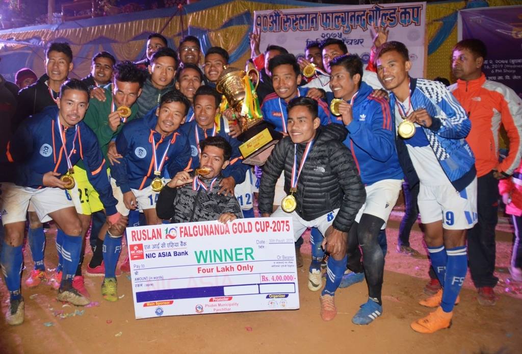 दिपक बोहोरा, पाँचथर झापा ११ फुटबल क्लबले दशौं रुस्लान फाल्गुनन्द गोल्ड कप फुटबल प्रतियोगिताको उपाधि जितेको छ । झापाले ए डिभिजन टोली त्रिभुवन आर्मी क्लबलाई २–१ ले हराउँदै वर्षको पहिलो उपाधि जितेको हो । उपाधिसँगै झापा ले नगद चार लाख प्राप्त गर्यो भने उपविजेता बनेको आर्मीले दुई लाखमै चित्त बुझायो । झापाका देवेन्द्र तामाङले सर्वोत्कृष्ट […]