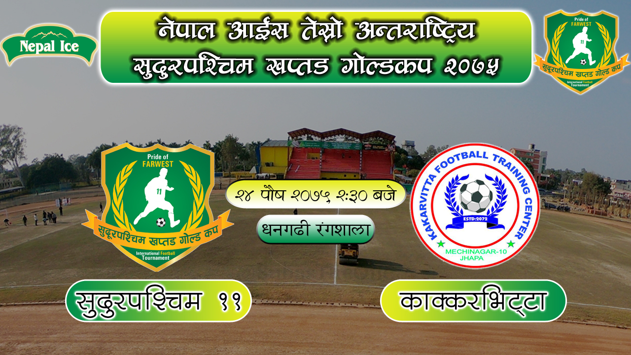 धनगढी (हाम्रो खेलकुद) – सुदुरपश्चिमको धनगढीमा मंगलबारदेखि सुरु हुने नेपाल आइस तेस्रो अन्तर्राष्ट्रिय सुदूरपश्चिम खप्तड गोल्डकपको उद्घाटन खेलमा आयोजक सुदूरपश्चिम-११ स्पोर्ट्स क्लब र काक्करभीट्टा फुटबल ट्रेनिङ सेन्टर भिड्दैछन् । खेल दिनको २:३० बजे धनगढी रंगशालामा सुरु हुनेछ । दुवै टोली मोफसलमा नाम चलेका टोली हुन् । ए डिभिजन लिगका खेलाडी सम्मिलित रहने दुवै टोलीले स्थानीय […]