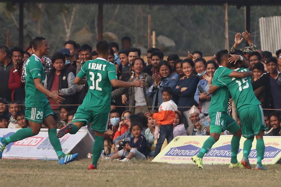 सिमरा (हाम्रो खेलकुद) – नवौं रुस्लान सिमरा गोल्डकपको उपाधि त्रिभुवन आर्मी क्लबले जितेको छ । फाइनल खेलमा थ्रीस्टारलाई २-० ले हराउँदै आर्मीले सिजनको पाँचौं उपाधि हात पारेको छ । खेलको पहिलो हाफमा प्रिन्स जर्ज कार्कीको स्थानमा बैकल्पिक खेलाडीको रुपमा प्रवेश गरेका दिनेश हेम्जनले गोल गर्दै आर्मीलाई आग्रता दिलाएका थिए । खेलको ५८ औं मिनेटमा बक्स […]