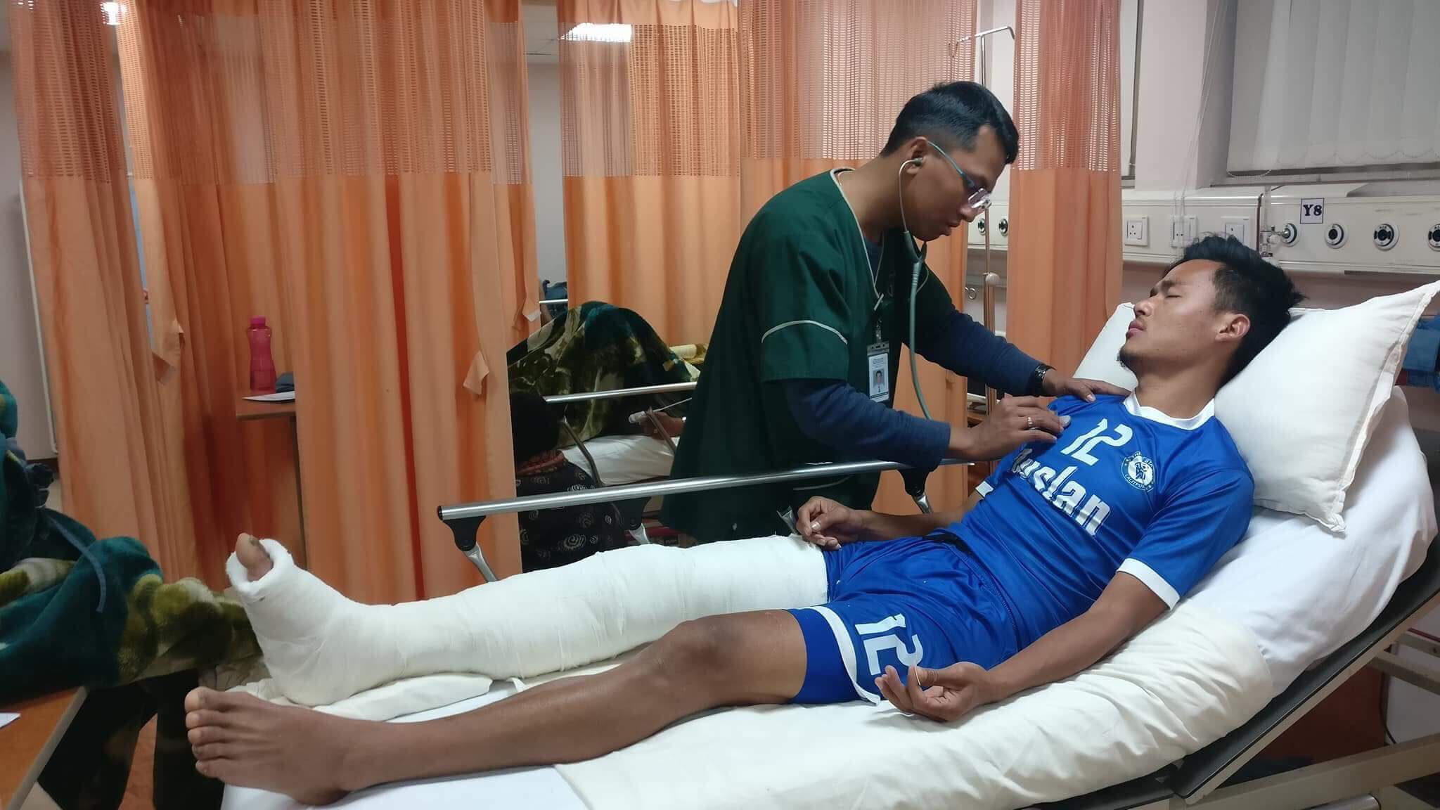 काठमाडौं (हाम्रो खेलकुद)– रुस्लान थ्री स्टार क्लबका लागि शनिबारको दिन मिश्रित खालको रह्यो । पाँचौं पटक बुढासुब्बा रेडबुल गोल्डकप फुटबल प्रतियोगिताको उपाधि उचाल्नुअघि शनिबार खेलका दौरान टोलीका कप्तान विक्रम लामा चोटग्रस्त भएका छन् । तस्बिर सौजन्य : सञ्जिव शिल्पकार पुलिससँगको फाइनल खेल्दा विपक्षी खेलाडीसँग ठोक्किएर उनको दायाँ नली खुट्टा भाच्चिएको छ । शनिबार साँझ नै […]
