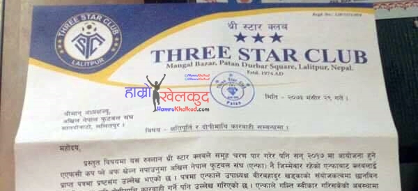 काठमाडौं (हाम्रो खेलकुद) – एएफसी कप प्ले अफ खेल्नबाट बञ्चित रुस्लान थ्री स्टार क्लबले क्षतिपूर्ति वापत ६ करोड रुपैयाँ र दोषीमाथि कारवाही गर्न अखिल नेपाल फुटबल संघ (एन्फा) मा बुधबार पत्र दर्ता गराएको छ । एन्फाकै लापरवाहीका कारण खेल्नबाट बञ्चित थ्री स्टारले मागको उचित संम्बोधन नभए त्यसबाट उत्पन्न हुने परिस्थितिका लागि पनि एन्फानै जिम्मेवार […]