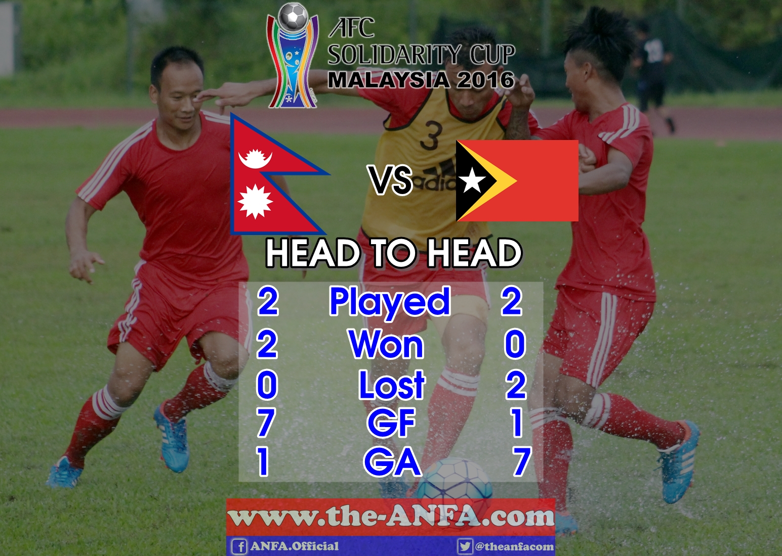 कुचिङ (हाम्रो खेलकुद) मलेसियामा जारी एएफसी सोलिडारिटी कप फुटबल प्रतियोगिताका लागि यस्तो छ नेपाली टोलीको तयारी । नेपालले शनिबार पहिलो खेलमा टिमोर लिस्टेको सामना गर्नेछ । टिमोर लिस्टेले ब्र्रनाईसँगको खेल ४–० ले गुमाएको थियो । टिमोर लिस्टेलाई हराउन सके नेपाल पहिलो खेलबाटै सेमिफाइन पुग्नेछ ।