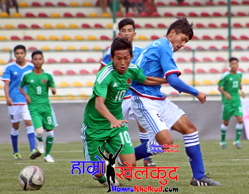 काठमाडौँ, १ आषाढ ललित स्मृति यु१८ फुटबल प्रतियोगिता २०७३ अन्तर्गत सी.एम.जी क्लब संकटा र नेपाल पुलिस क्लबले आज एन्फा कम्प्लेक्समा भएको आ-आफ्नो खेलमा जित दर्ता गरेका छन्| दिनको पहिलो खेलमा थ्री स्टार क्लबले संकटा क्लबसंग ३-२को पराजय व्येहोर्यो| संकटाका लागि दिपेन्द्र केसीले १९ मिनेटमा खाता खोलेपनि थ्री स्टारका कप्तान अरुज सिंहले २७औं मिनेटमा बराबरी गोल […]