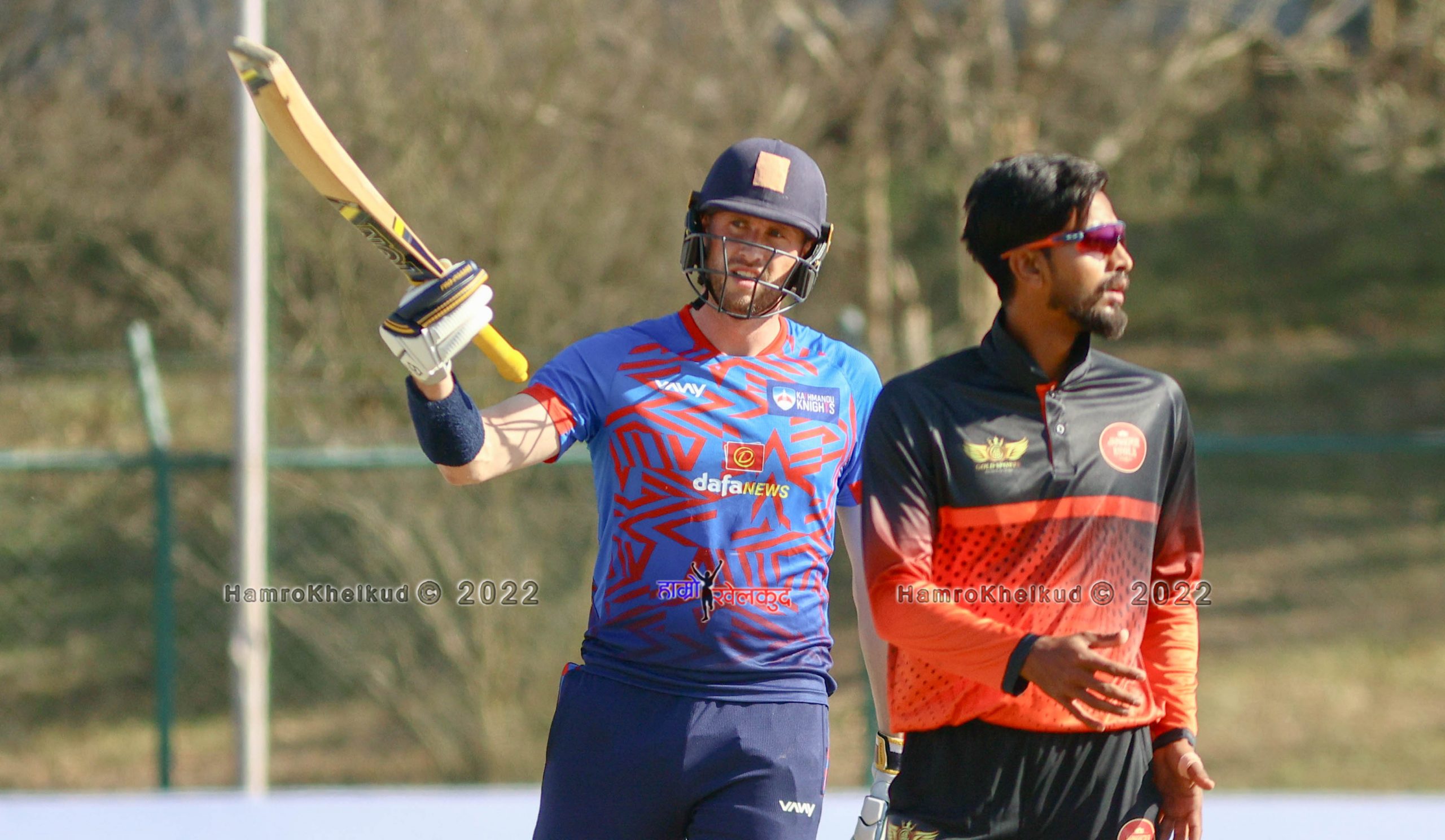 काठमाडौं (हाम्रो खेलकुद) – कप्तान रोहित पौडेलको अर्धशतकमा विराटनगर सुपर किंग्सले नेपाल टि२० लिगमा फार वेस्ट युनाइटेडलाई ६ विकेटले हराउँदै प्लेअफ सम्भावना कायमै राखेको छ । जितको लागि १ सय ५७ रनको विजयी लक्ष्य पछ्याएको विराटनगरले १९.३ ओभरमा ४ विकेट गुमाउँदै पूरा गर्यो । विराटनगरका कप्तान रोहित पौडेलले ४२ बलमा ४ चौका र २ छक्कासहित […]