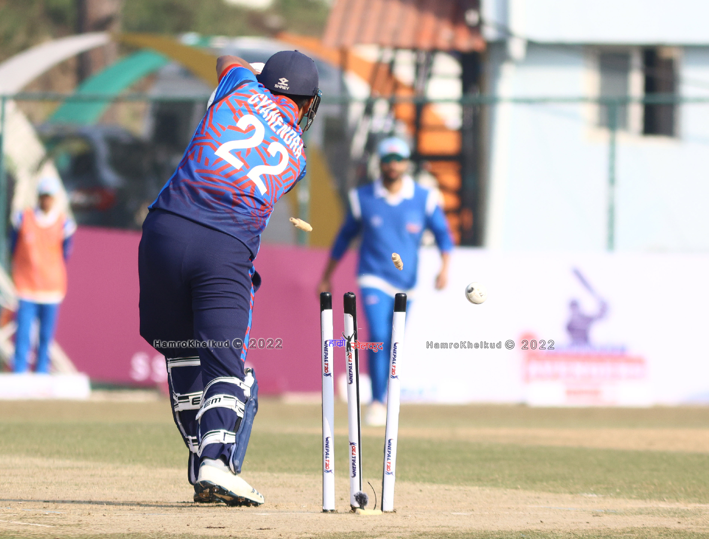 काठमाडौं (हाम्रो खेलकुद) – युवा ओपनर सुमित महर्जनको उत्कृष्ट प्रदर्शनमा पोखरा एभेन्जर्सले नेपाल टि२० लिगमा काठमाडौं नाइट्सलाई पाँच विकेटले हराएको छ । सुरुवाती पाँच खेलमा हारपछि उत्कृष्ट पूनरागमन गर्दै लगातार तीन खेलमा जितका साथ पोखराले प्लेअफ सम्भावना कायमै राखेको छ । जितको लागि १ सय ६५ रनको विजयी लक्ष्य पछ्याएको पोखराले १९.४ ओभरमा ५ विकेट […]
