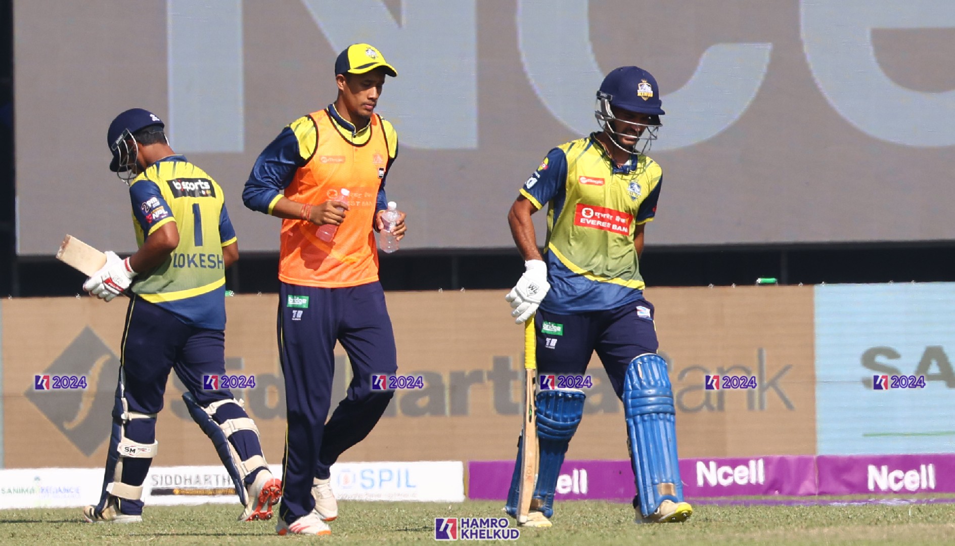 काठमाडौं(हाम्रो खेलकुद) – नेपाल प्रिमियर लिग (एनपिएल) मा काठमाडौं गुर्खाजले विराटनगर किंग्समाथि रोमाञ्चक जित हासिल गरेको छ । आइतवारको पहिलो खेलमा विराटनगरलाई १ विकेटले हराएपछि काठमाडौंले प्लेअफ सम्भावना कायमै राखेको हो । १ सय १८ रनको लक्ष्य काठमाडौंले १८.१ ओभरमा ९ विकेट गुमाएर पूरा गर्यो । काठमाडौंका लागि प्रतिक श्रेष्ठले सर्वाधिक ३९ रन जोडे । […]