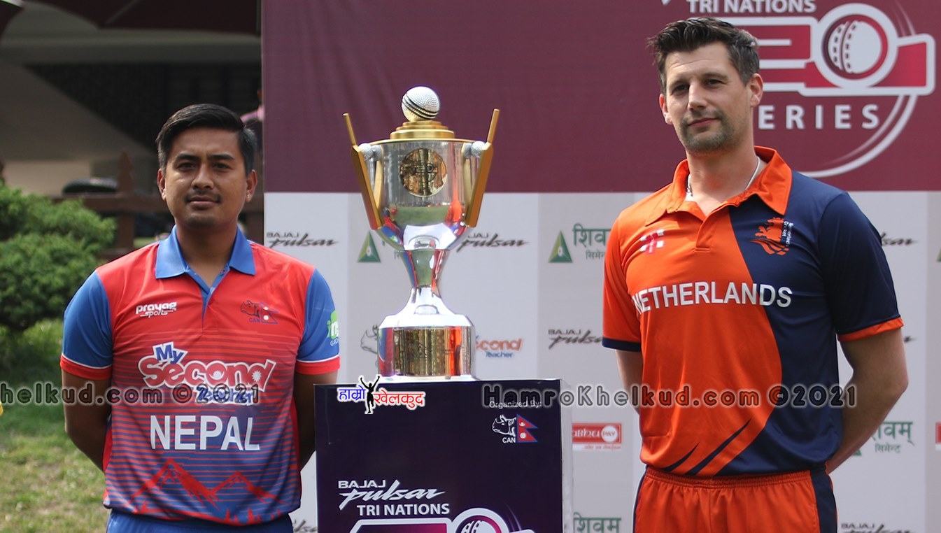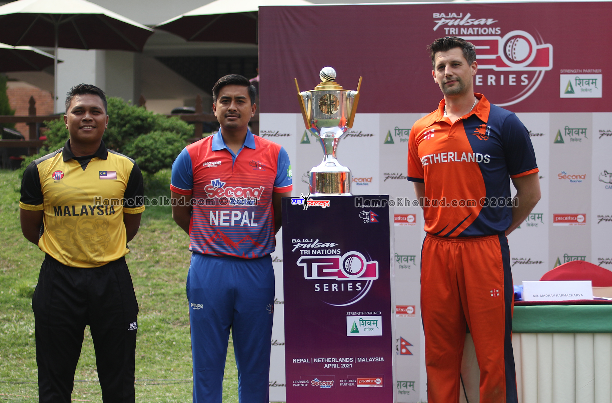 काठमाडौं (हाम्रो खेलकुद) – शनिबार टियुमा सुरु हुने नपाल, नेदरल्यान्ड्स र मलेसियाबीच हुने त्रिकोणात्मक टि२० आई सिरिजको ट्रफी सार्वजनिक भएको छ । नेपाल क्रिकेट संघ (क्यान) ले शुक्रबार एक पत्रकार सम्मेलन गर्दै नेपालका कप्तान ज्ञानेन्द्र मल्ल, नेदरल्याड्सका पिटर सीलार र मलेसिया कप्तान फैज अहमदलाई राख्दै ट्रफी सार्वजनिक गरेको हो । जर्मनीमा निर्मित उक्त ट्रफीमा स्वरोभ्सकी […]